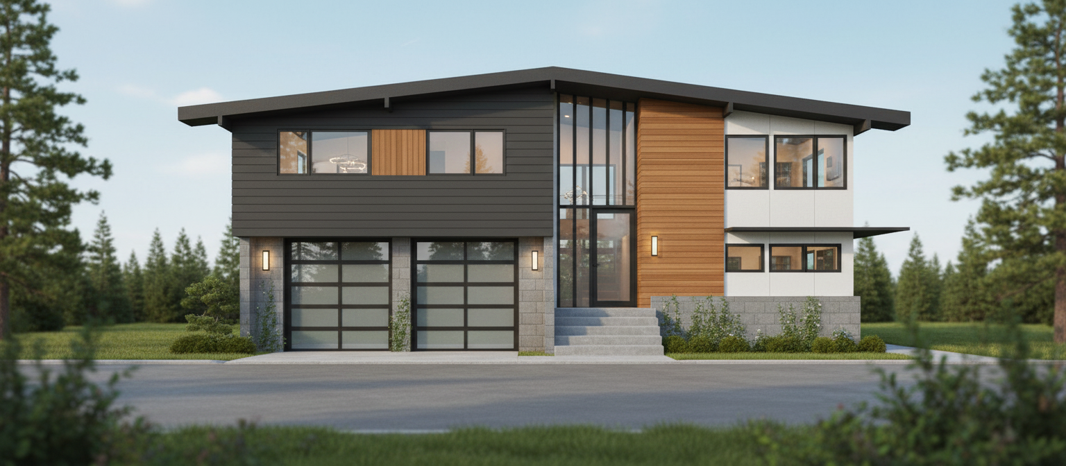 modern dark grey stucco house red spanish tile in sedona arizona