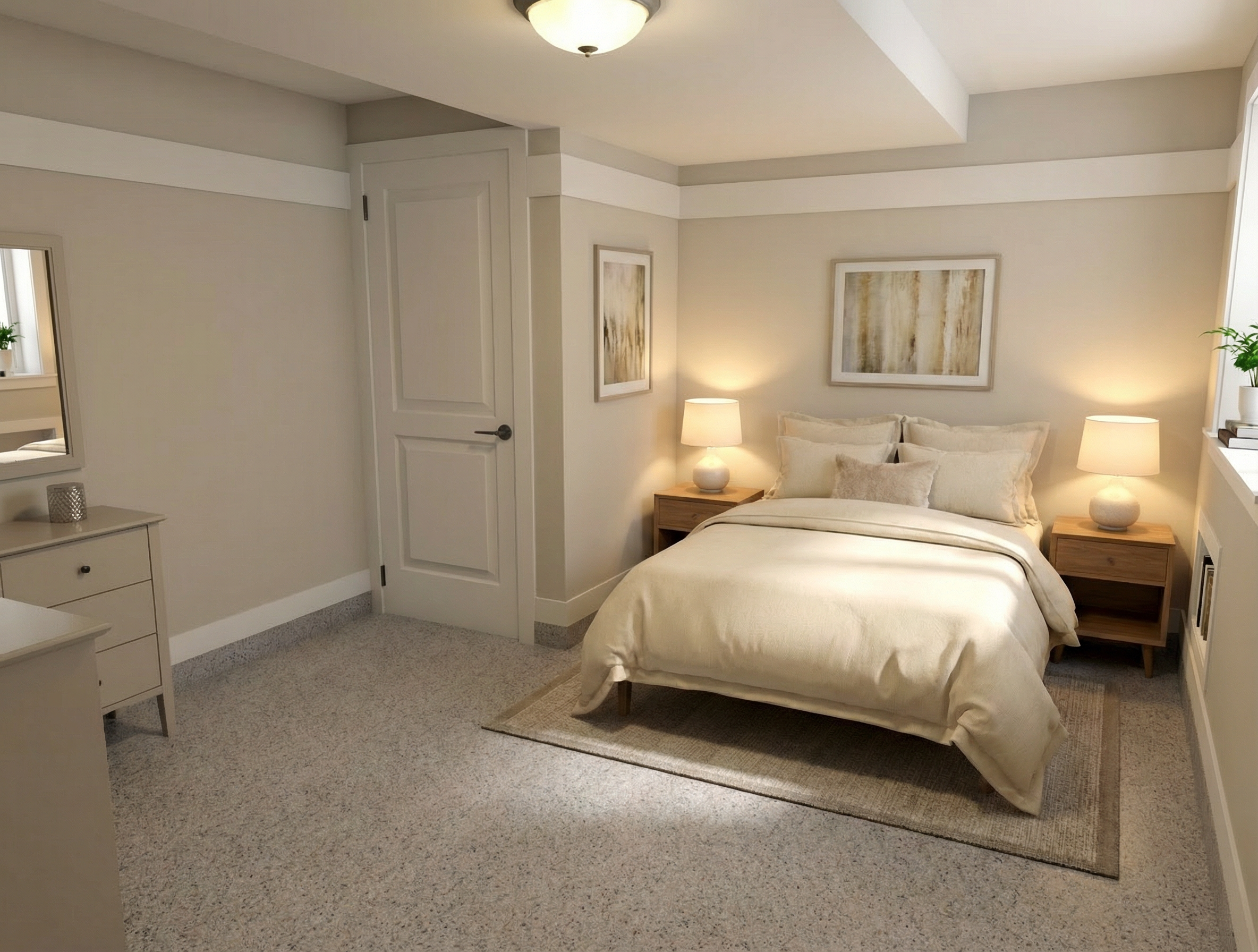 render and enhance this image into a realistic interior visualization keep the existing layout chairs wall proportions and shelving design exactly as shown do not change the architecture or geometry material adjustments change the wooden parametric shelf panel to a soft light oak tone with the appearance of natural birch plywood warm and slightly desaturated with subtle and realistic wood grain typical of birch plywood the finish should feel smooth premium and modern the wood color must be lighter and softer than the current tone harmonizing with the neutral wall finish light flooring and beige seating avoid dark walnut or overly saturated wood tones shelving and products add more nail polish bottles on each shelf evenly distributed and well organized increase the quantity so the shelves feel full but clean and uncluttered change the nail polish colors to a varied and balanced palette including soft pinks nudes reds corals pastels and a few bold accent colors maintaining a professional and elegant nail salon display lighting improve the overall lighting to feel soft clean and commercial similar to a high end nail salon or beauty studio add a warm backlight behind the wooden parametric panel creating a subtle glow that separates the piece from the wall and emphasizes the depth and curvature of the vertical slats include gentle highlights on the wood surfaces to enhance texture and dimensionality no harsh shadows rendering style photorealistic clean modern interior render natural materials premium commercial finish realistic textures accurate scale and soft ambient lighting