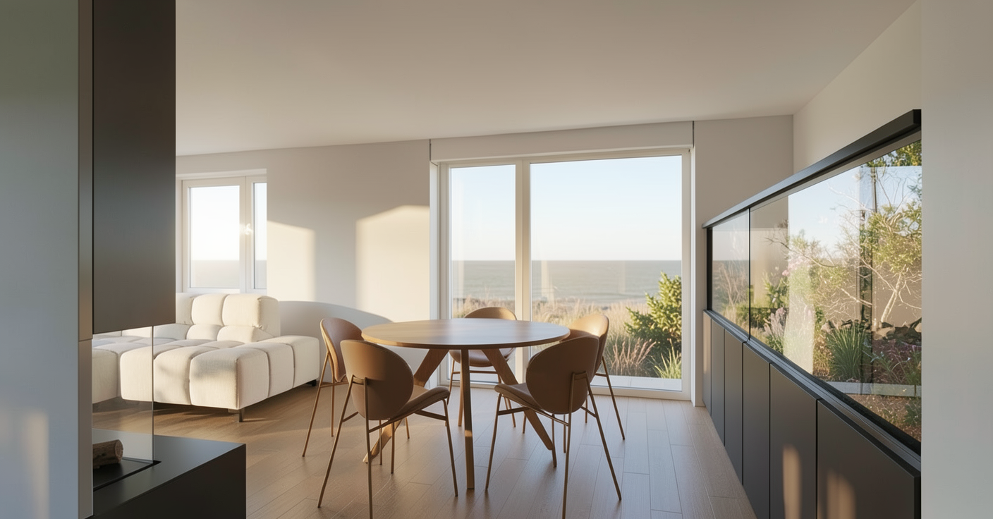 photorealistic architectural render based exactly on this elevation drawing strictly follow the architect s design do not alter reinterpret or redesign the building form in any way the overall building geometry roof shape ridge lines symmetry wall positions window and door placements and ground layout must remain exactly as per the elevation do not distort the roof paths or proportions red orange clay brick facade cream painted upvc casement windows with cream window bars sage green front door with glazed panels either side of the door grey black roof tiles cream fascia and soffitt soft natural daylight with realistic shadows ultra realistic textures architectural photography style remove all text from image cream oak framed porch do not introduce any unintended design changes or artifacts