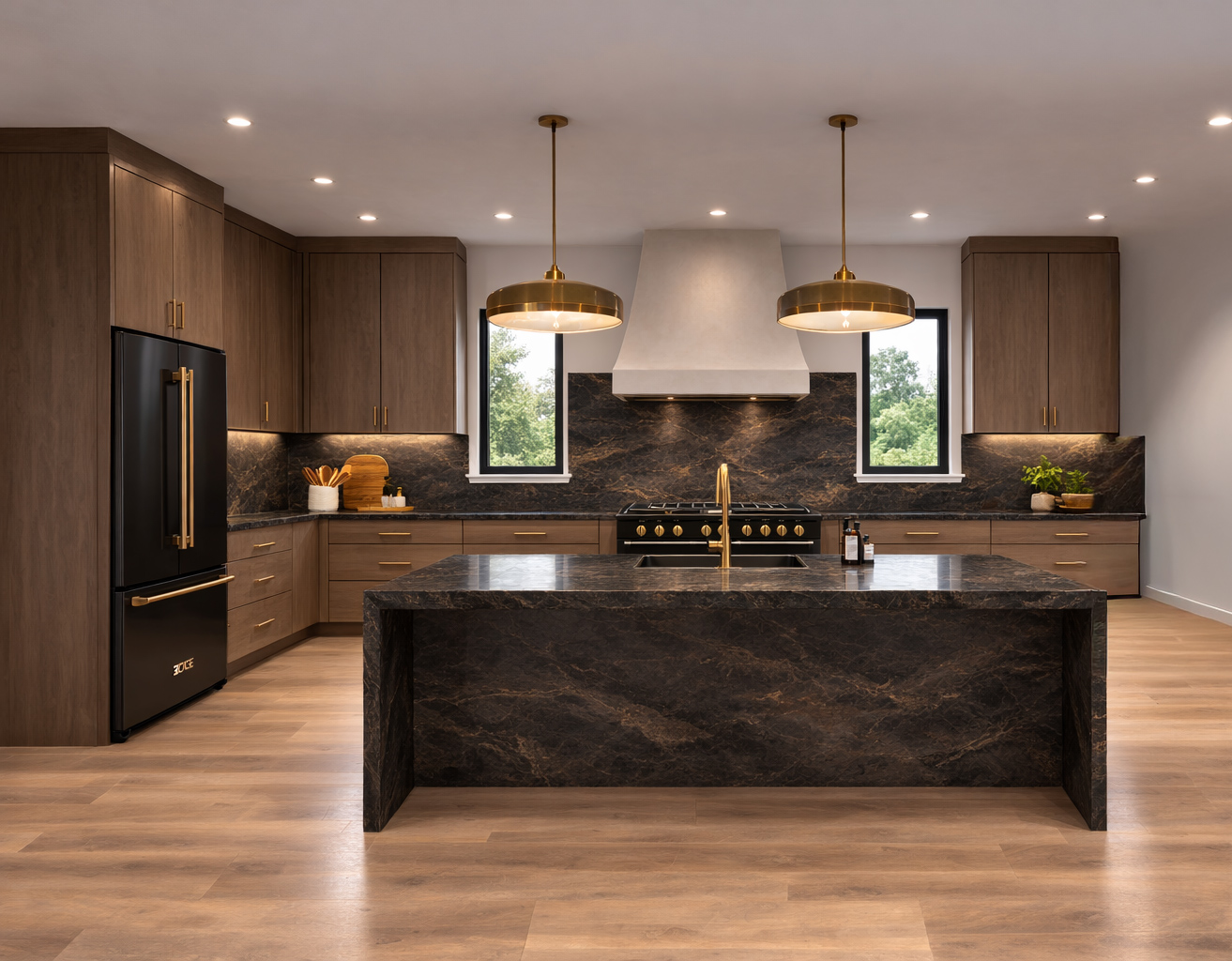 can you make the ceiling slant down toward the vent hood wall add wood slats to the ceiling and add a skylight on either side of the vent hood