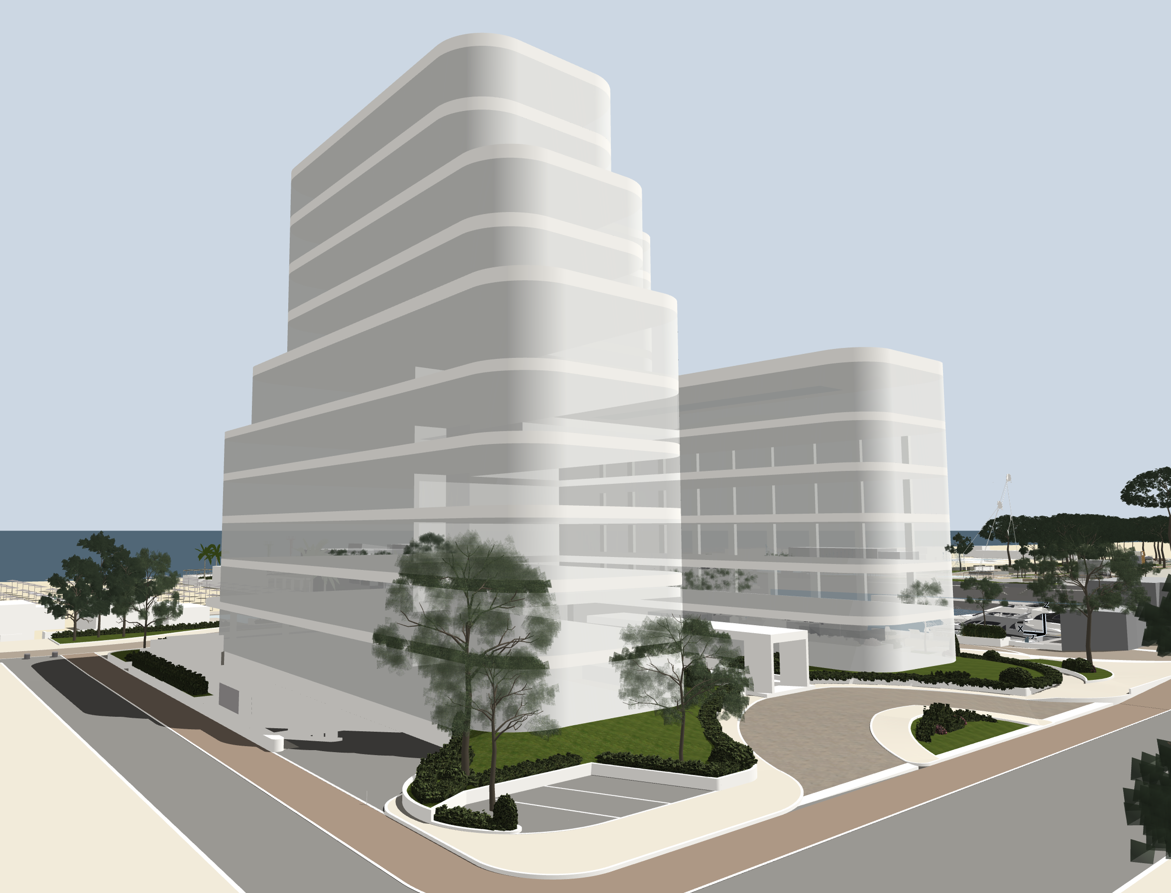 zaha hadid exterior shot a new 5 star hotel on the dock it uses an architectural language reminiscent of luxury yachting with the dominant color being white all floors feature deep loggias and numerous overhanging balconies especially on the upper floors with wooden slatted ceilings lots of hanging greenery fully glazed walls lush greenery on all floors architecture