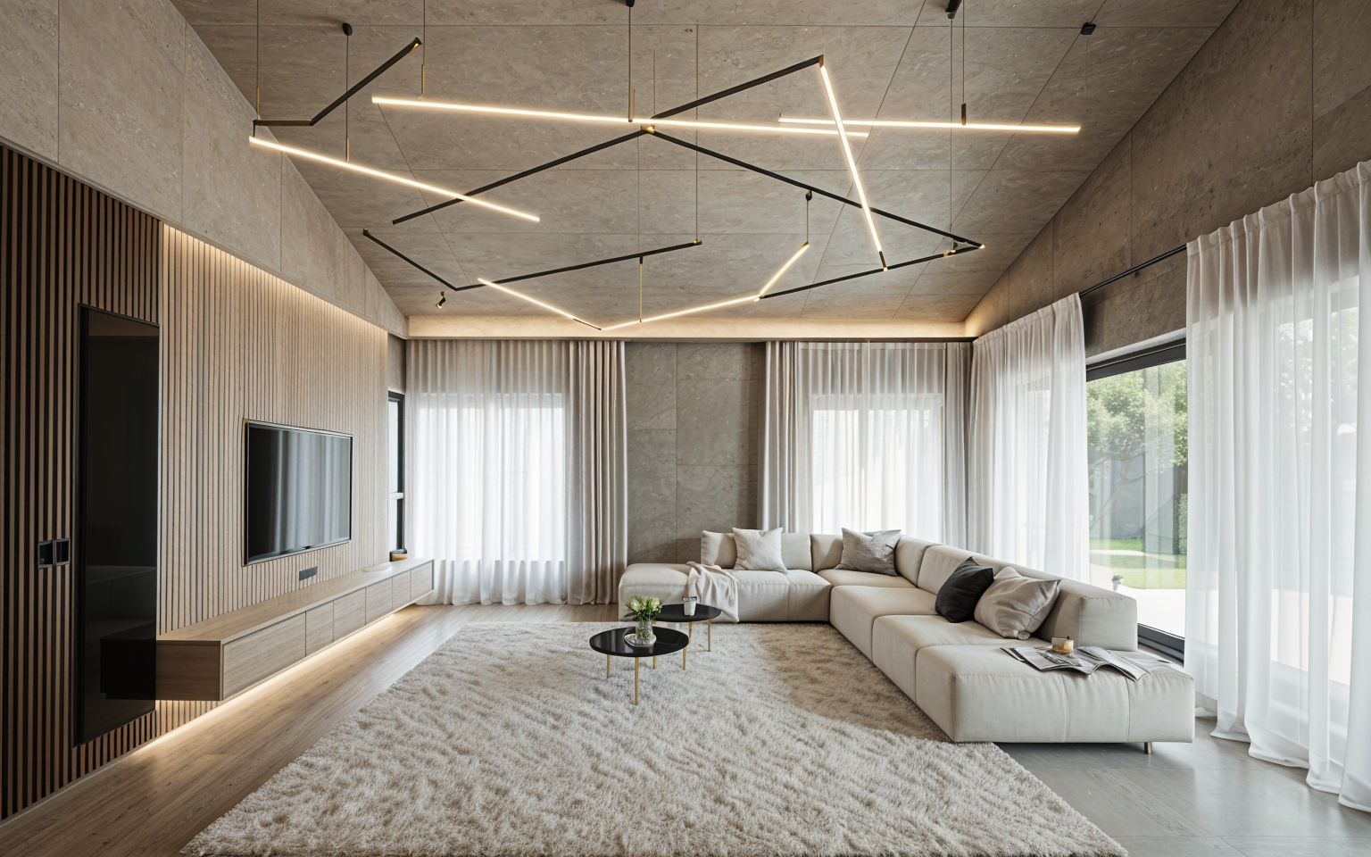 modernist interior shot prelep prostor sa neznim belim zavesama na prozorima architecture