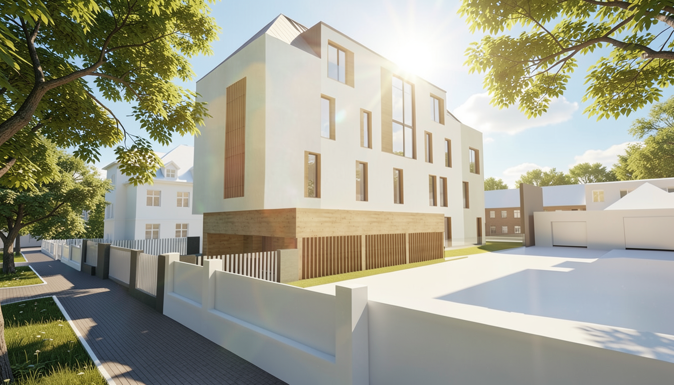 popraw niebo dodaj s once lato elewacja o wietlona dodaj drzewa li ciaste na horyzoncie japandi lato dodoaj ga zie drzewa d bu po lewej stronie na pierwszym planie rozmyte