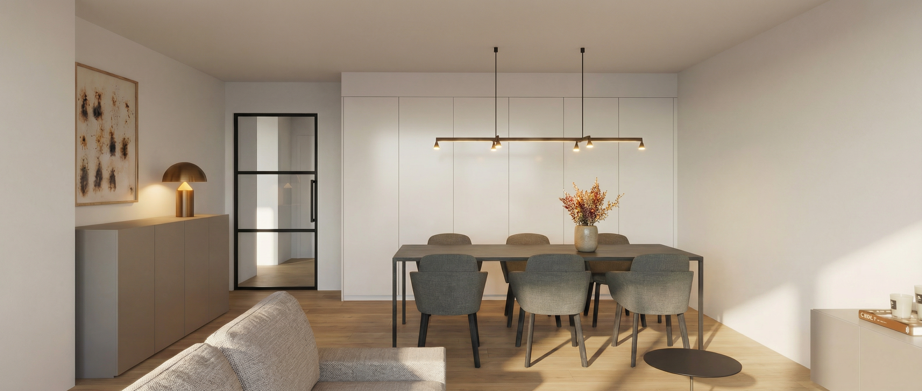 modern office building use facade materials such as architectural concrete glass wooden window cladding winter view christmas atmosphere show puddles in the square add decorated christmas trees