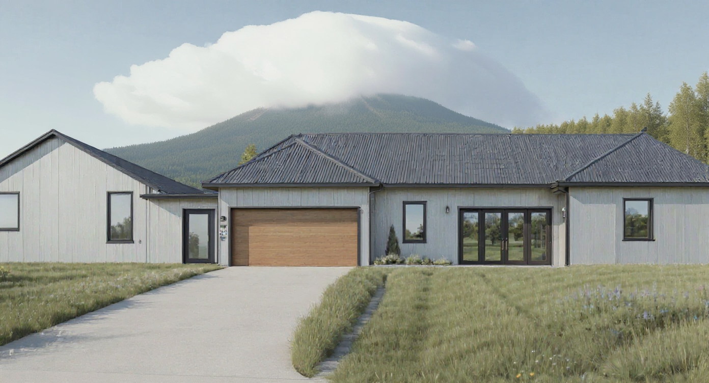modernist exterior shot neat roof dark grey architecture