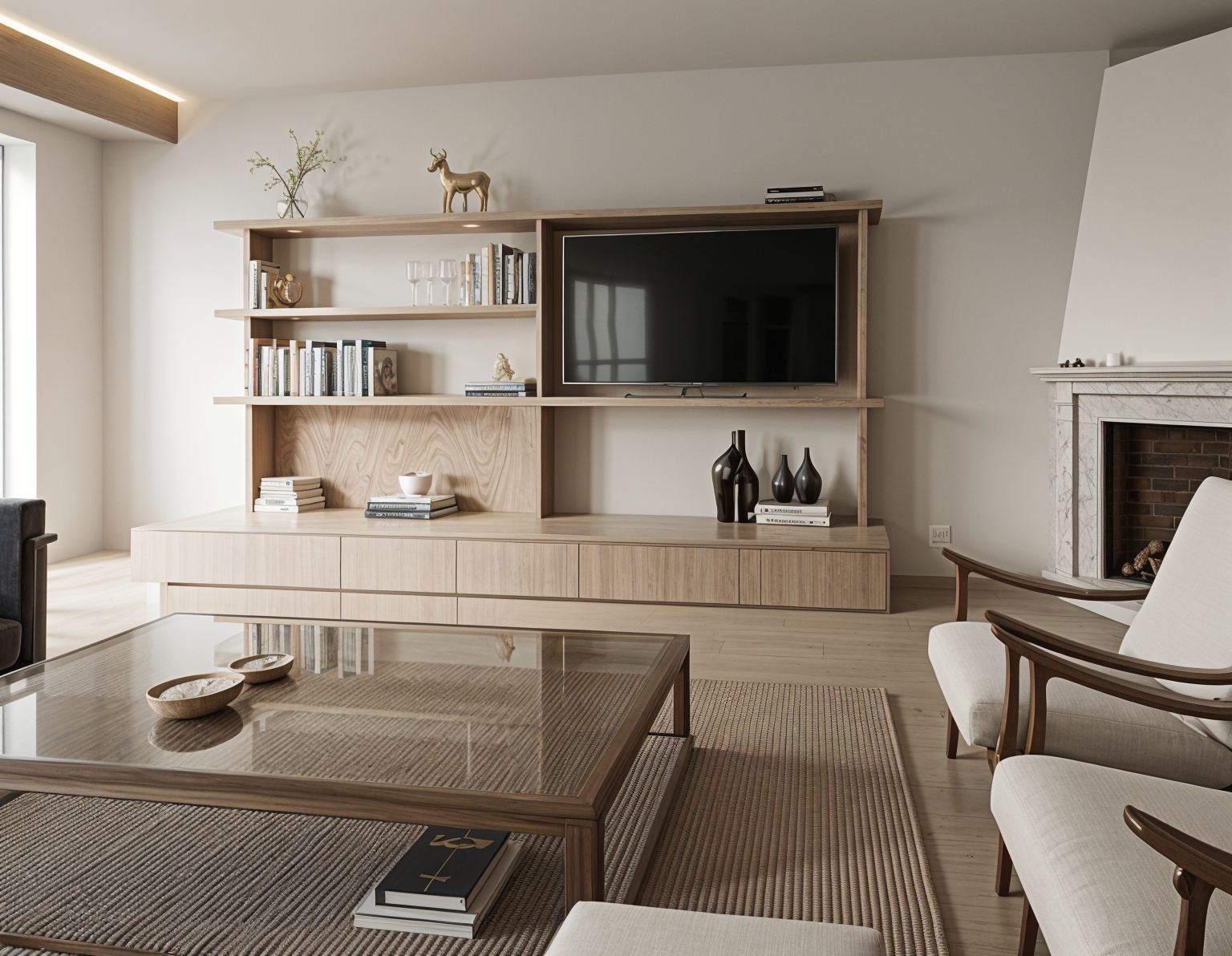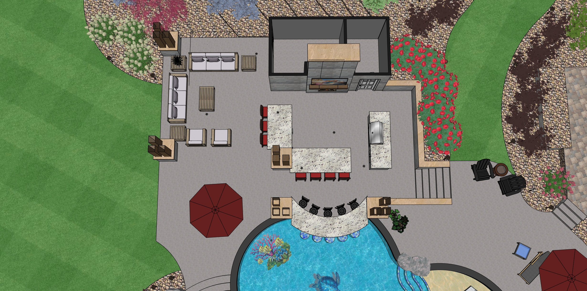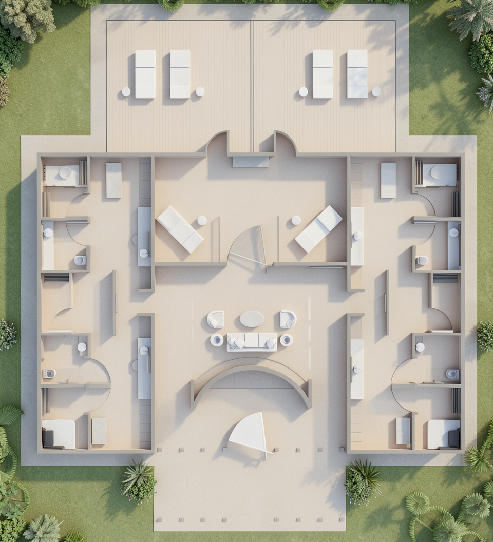 create a photorealistic exterior rendering from this sketch up view use realistic materials accurate scale and natural proportions apply soft daylight with realistic shadows global illumination and subtle reflections enhance textures without changing geometry maintain the original camera angle and composition produce a clean professional real world visualization