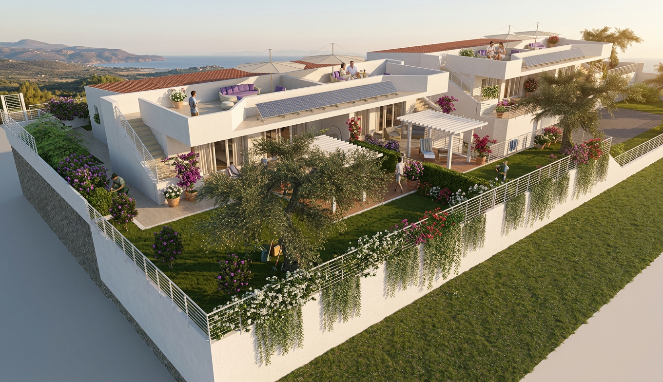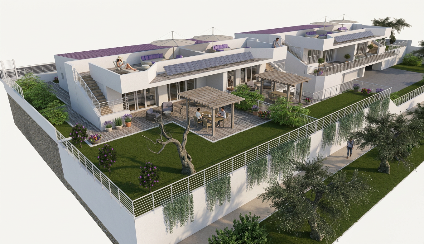 a shot taken from a road of a residential park