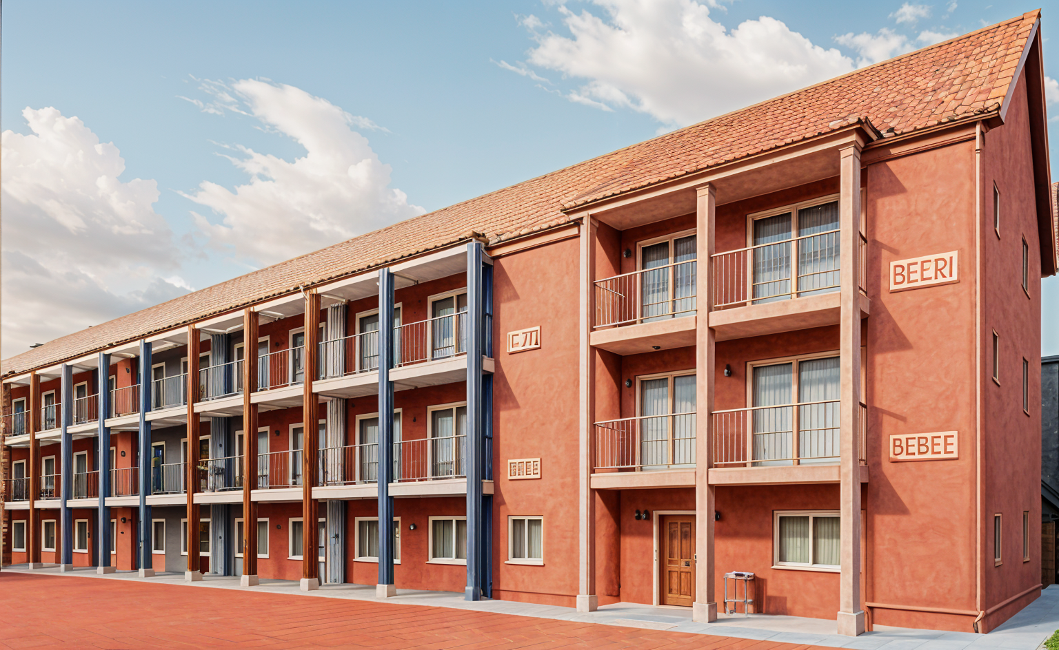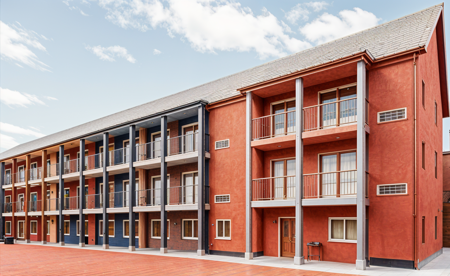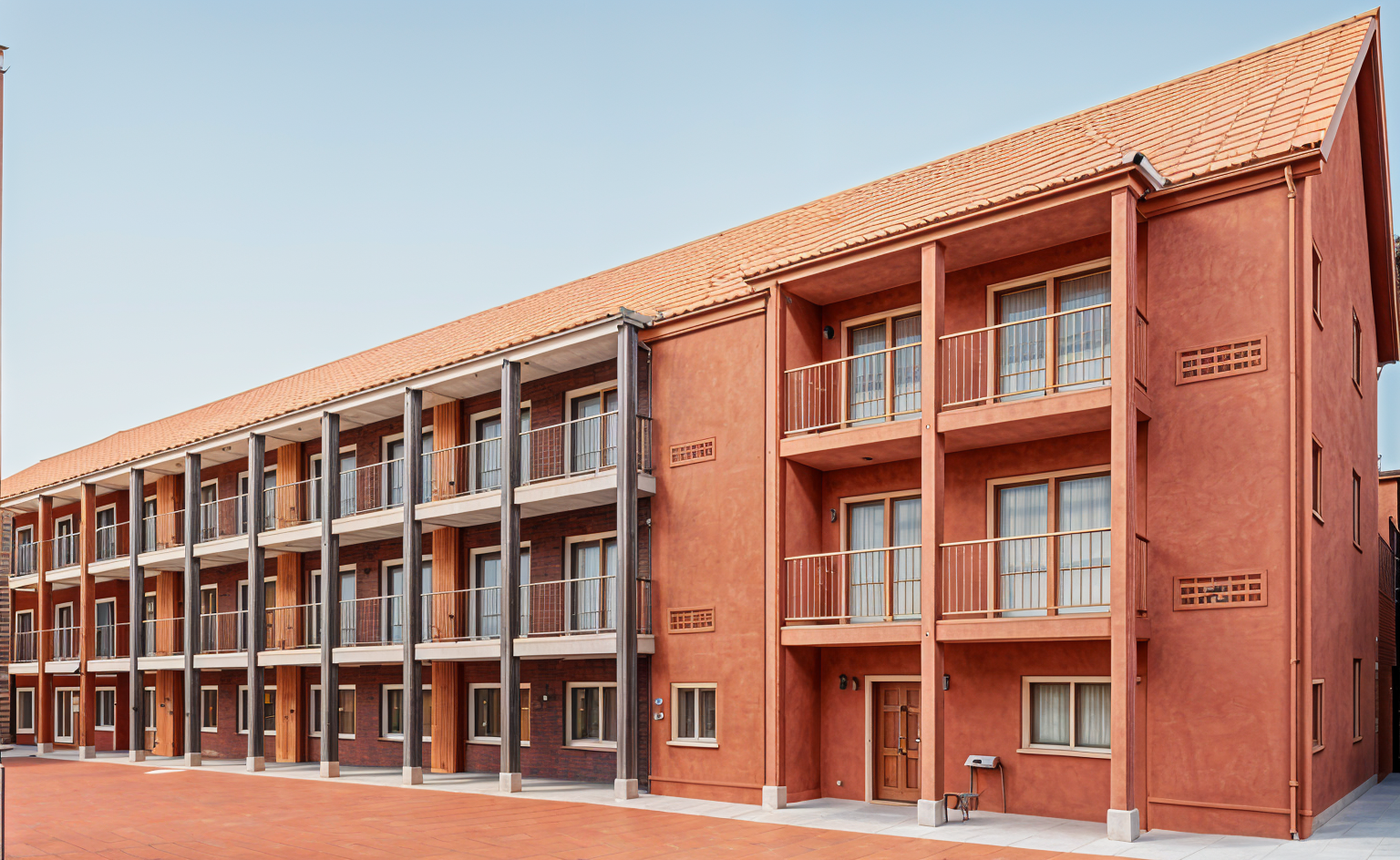 exterior shot use cavern clay for the wall colours distance for the columns and origami white for the under side of the balcony and slabs