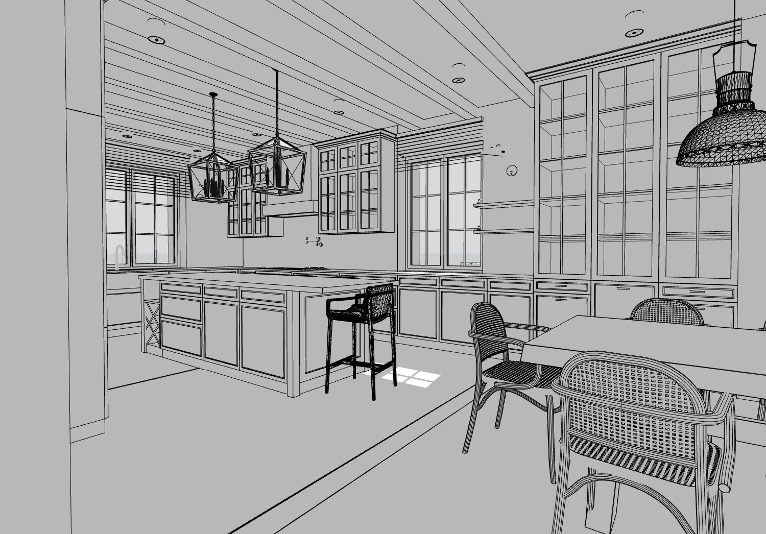 interior shot make realistic visualisation of this modern farmhouse kitchen in light wood and pastel colours
