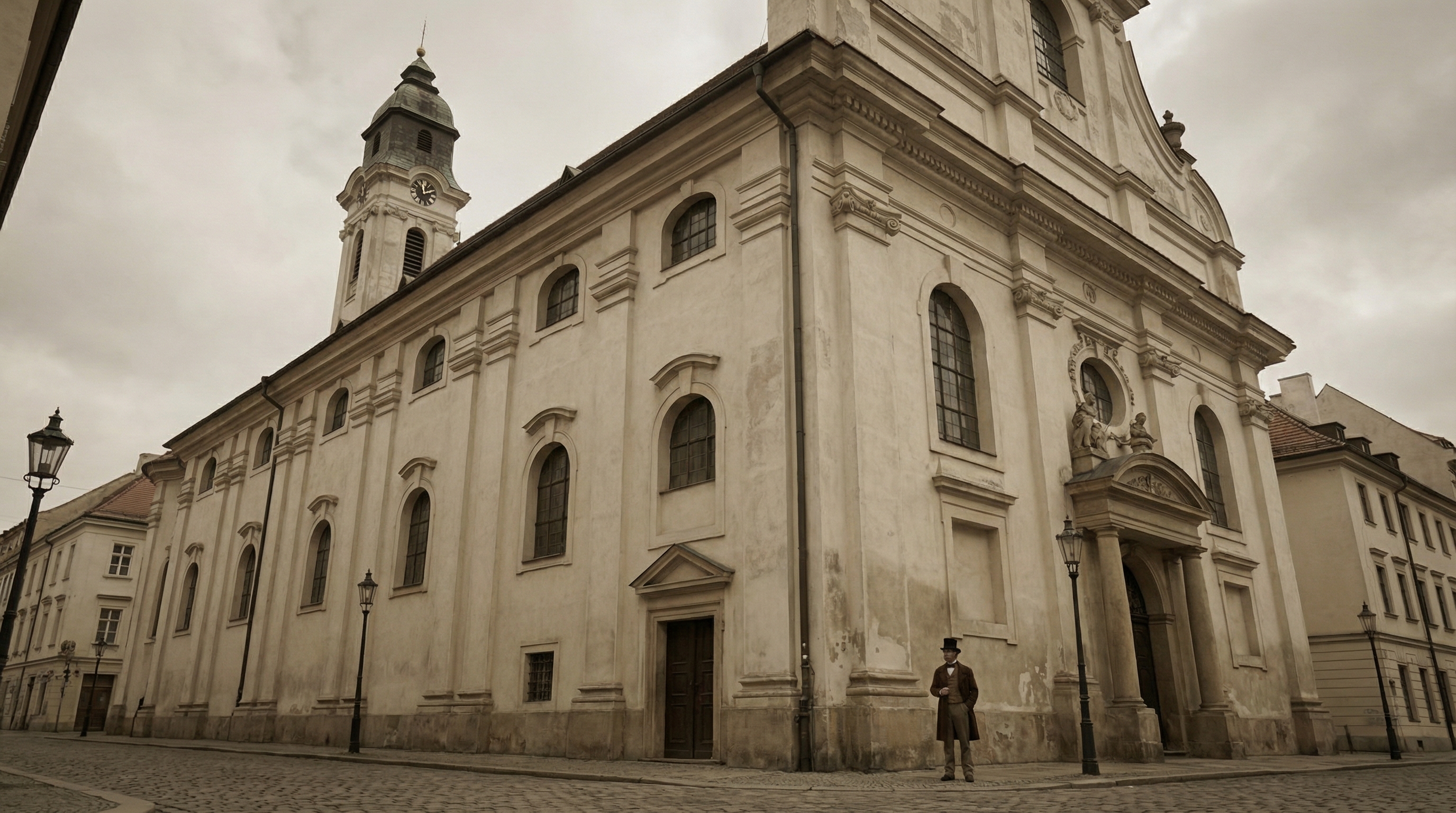 restaurated renovated facade 1800 s mood remove background buildings grey zinc tower roof renovated tower walls renovated fish scale tile on the main roof