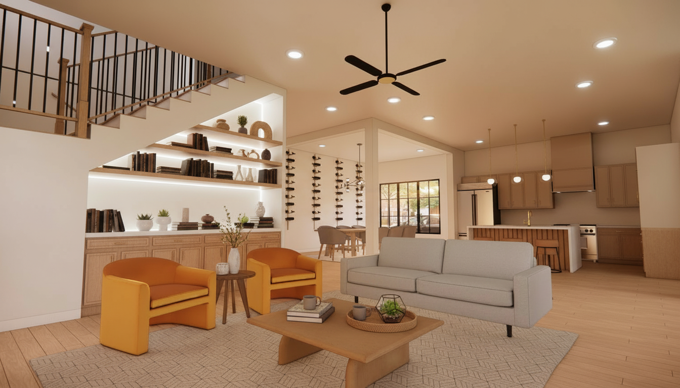 realistic image move rug in front of bathrub change wall color to very pale rose add small chandelier over bathtub change tile to soft white small mosaic remove rugs edit rug only to be oval shaped only make wall color more cream colored only change view through windows to dusk sky