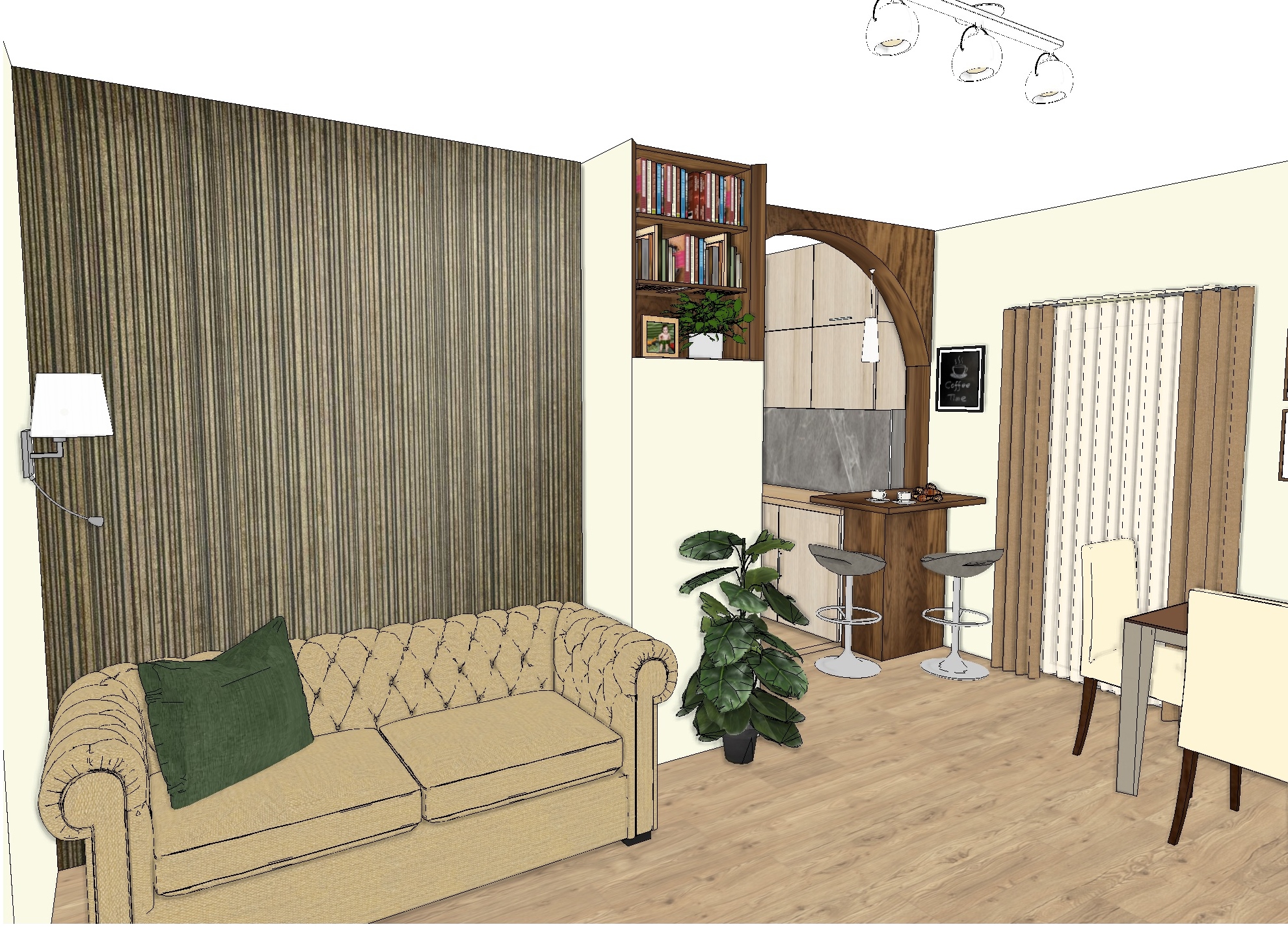 put picture on the wall and there is a kitchen behind the counter leave it open