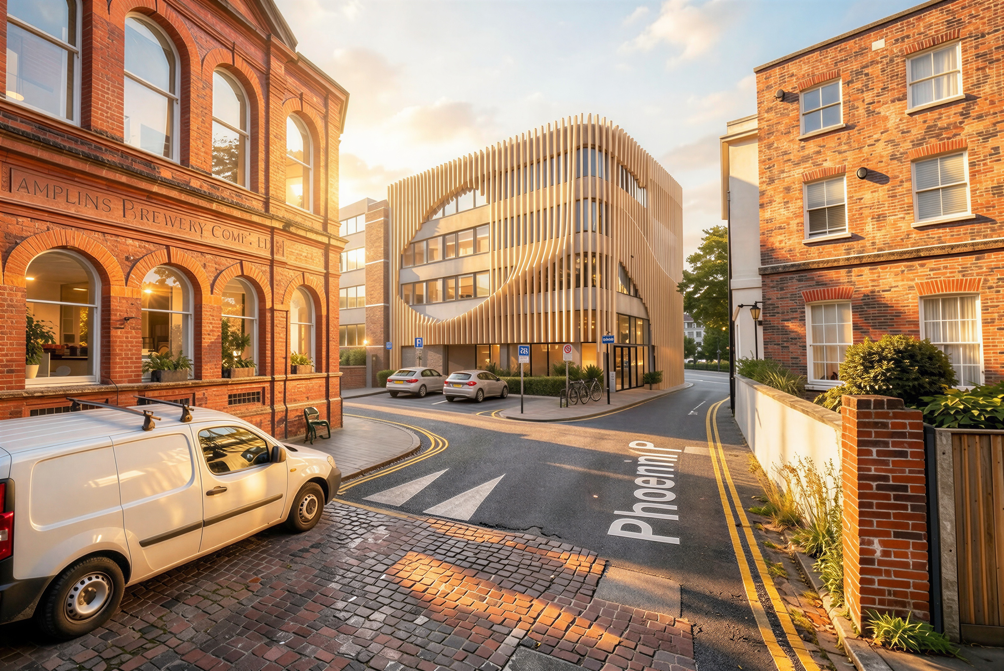 without changing anything else can you add a few blurred people walking infant of the building and one infant of the bike stand