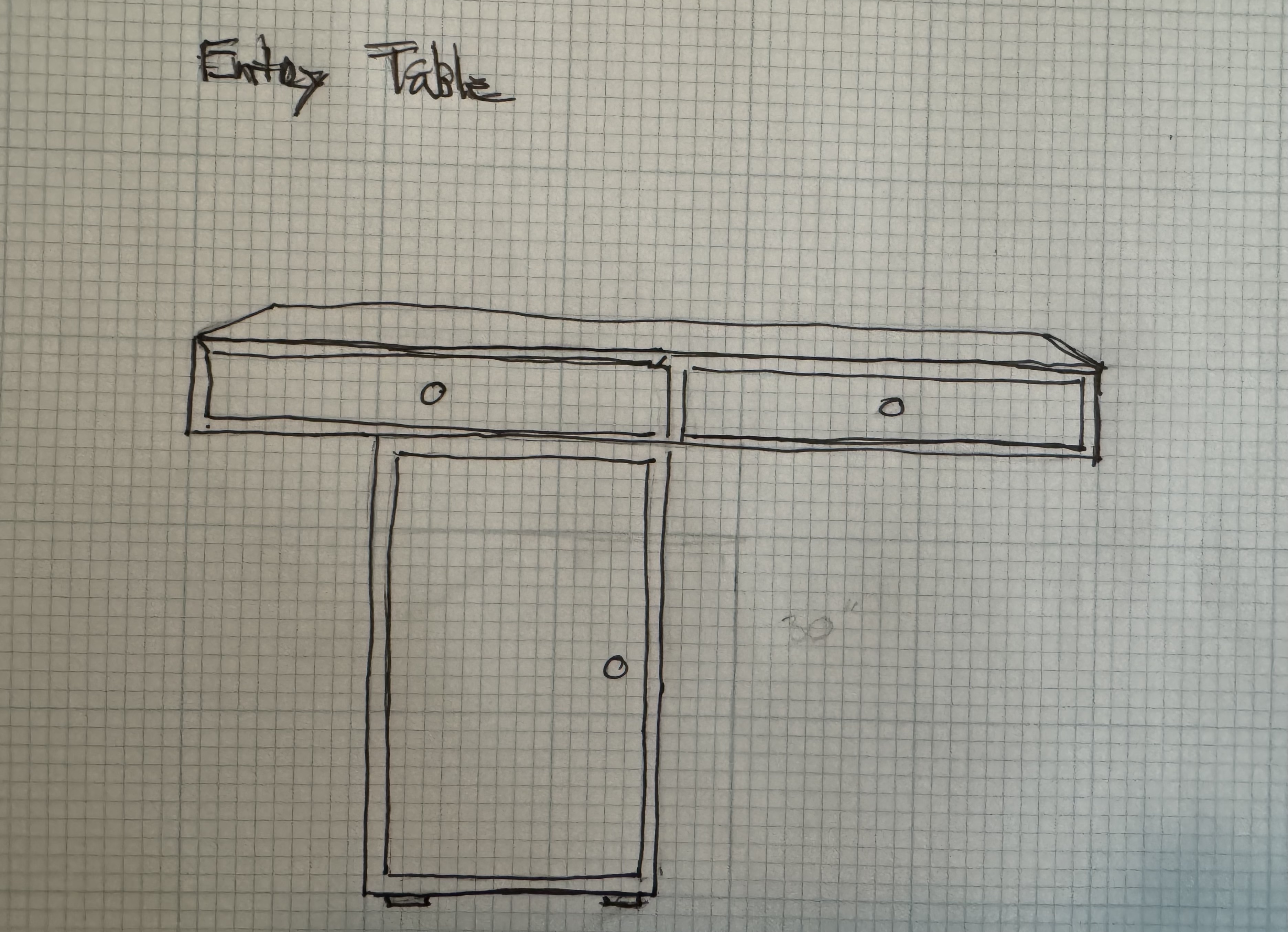 copy this sketch of a 30 tall entry table with an off set top and make i a charcoal wood