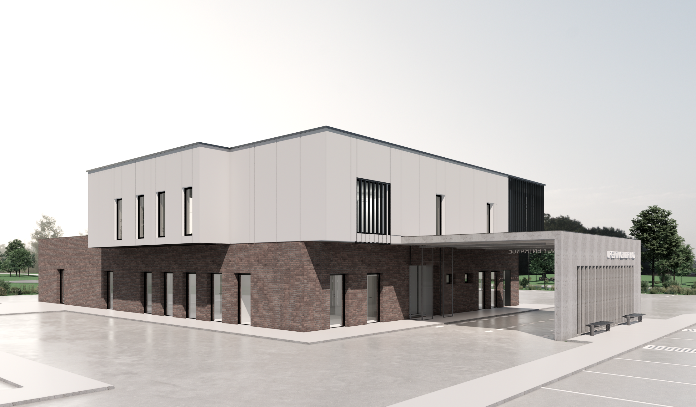 lots of trees and greenery keep the pavement the same bmw jeep and audi doctors in white at the entrance keep all text exactly the same on the surface ambulance at the entrance architecture