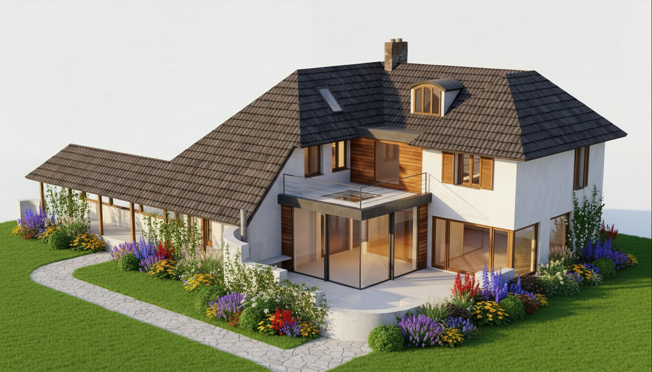 a manicured lawn layered flower beds natural surrounding low maintenance shrubs native plants morning skye