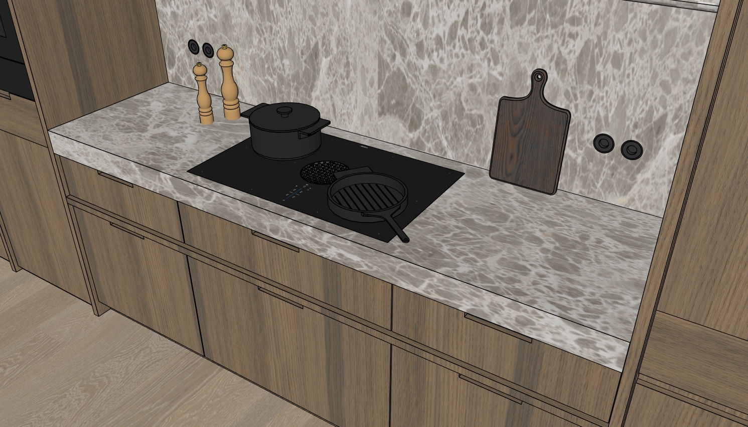 make this photorealistic no handles they are cut out of the doors