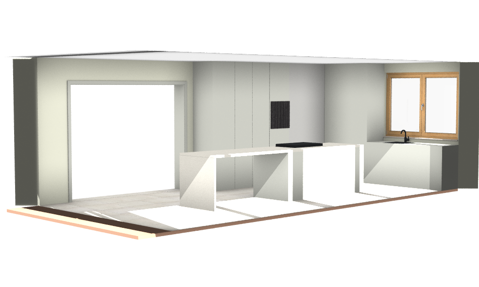creamy grey cabinets with light brown cementlook countertops and luxurious lighting