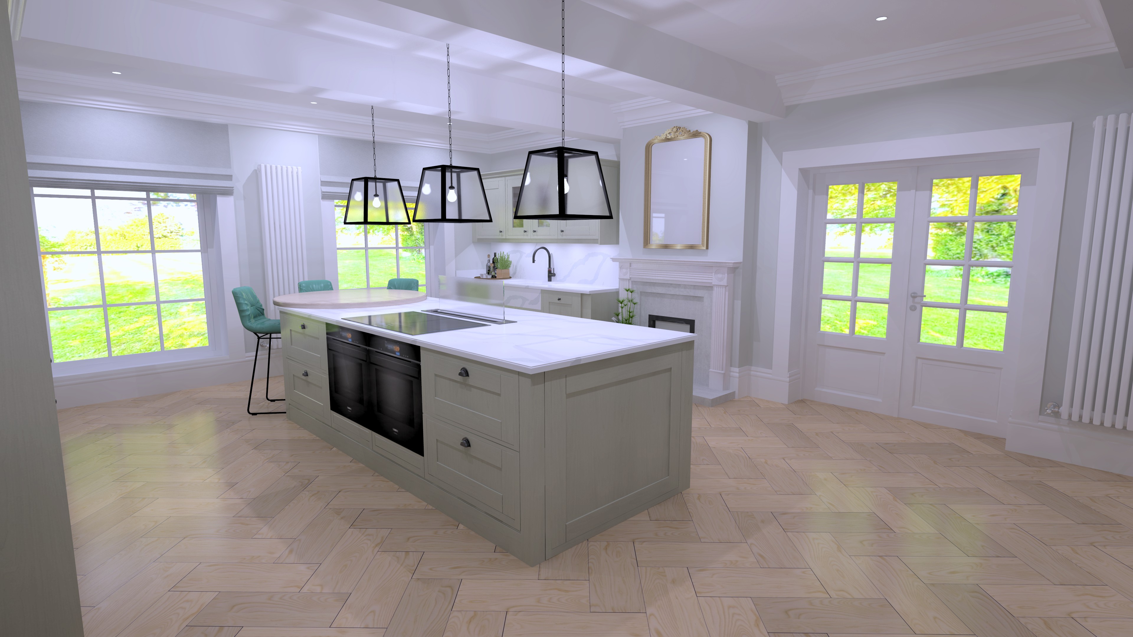 generate a photo realistic rendering of the exact input design without altering its layout shapes proportions materials or decorative elements do not add remove or change any objects colors or features simply enhance lighting texture reflections and photographic detail so it looks like a real high resolution photograph of the design provided