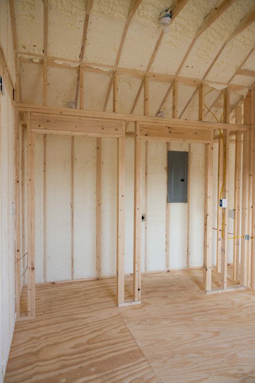 modernist interior shot show me a internal finish plasterboard walls and flooring architecture