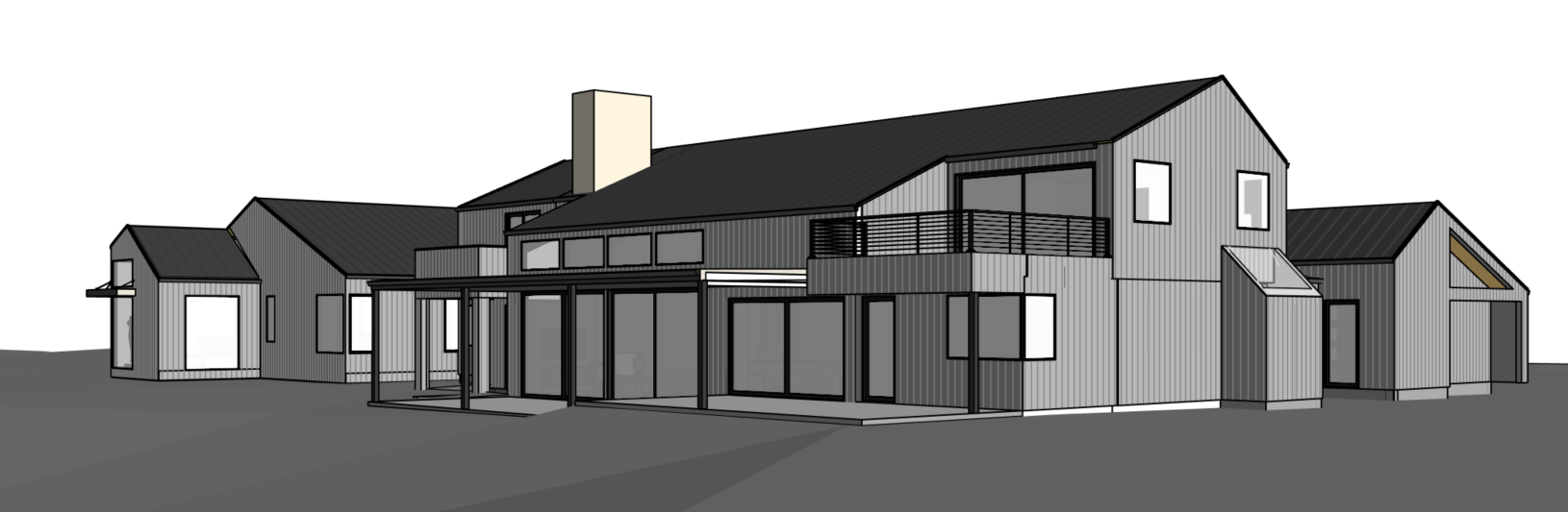 home in the colorado foothills with vertical grey wood siding dark metal roof interior lights