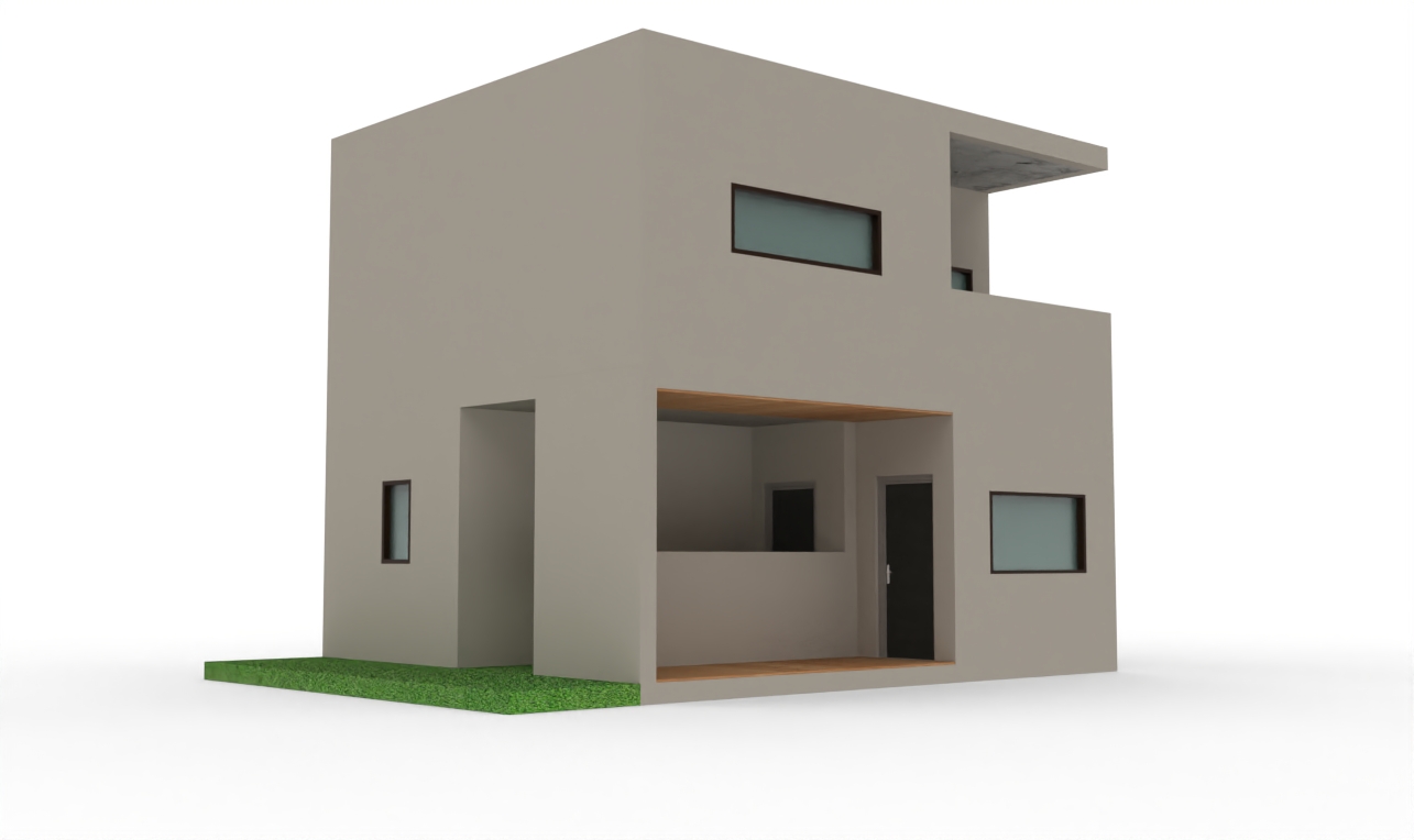 imagine ultra realistic architectural exterior rendering of a two story accessory dwelling unit adu tropical modern architecture inspired by chad oppenheim heavy monolithic form with deeply recessed garden facing loggia thick concrete roof slab creating strong overhang shaded outdoor living space carved from the volume minimal horizontal window openings solid walls emphasizing privacy inward oriented design subtle wood soffit at recessed ceiling clean stucco or concrete finish controlled daylight with strong contrast between light and shadow calm atmospheric quality professional architectural visualization raw photo realism ar 4 3 style raw