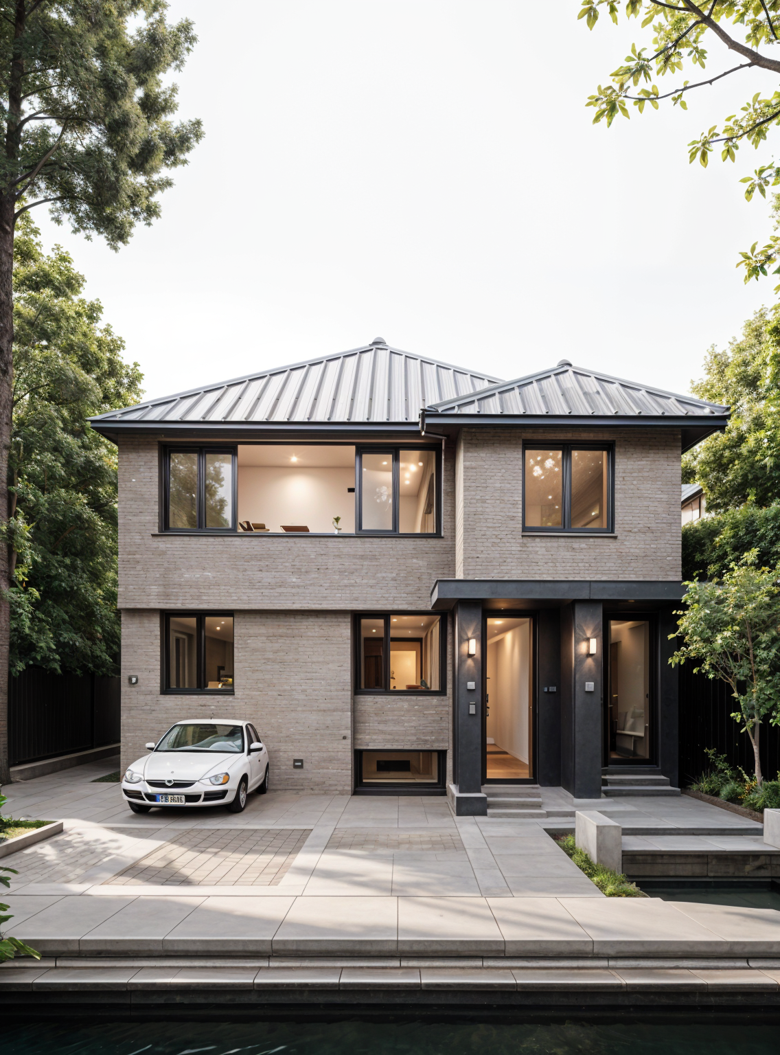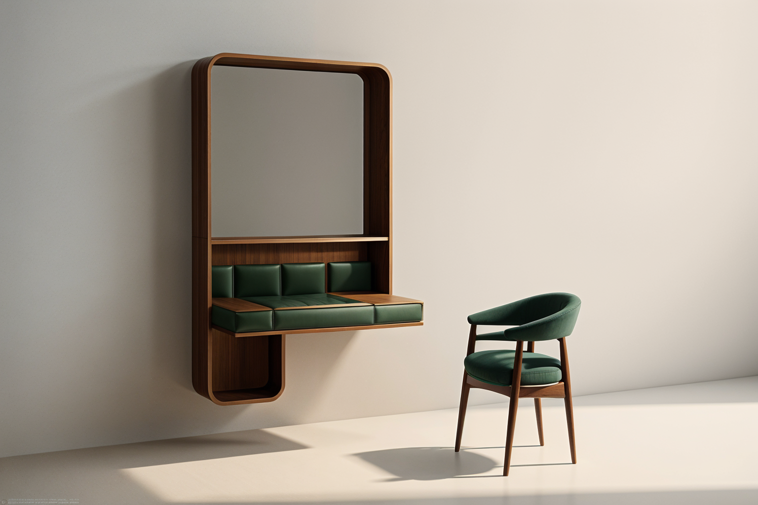 create a modern minimalist interior room featuring a sleek design the walls are adorned with dark wooden panels contrasted by light gray floating shelves a subtle warm gray offers a cozy yet sophisticated feel to the couch and other fabric textures the floor features a smooth natural wood tone that adds warmth to the space large windows showcase wooden blinds with a light oak finish bathing the room in natural sunlight that softly reflects off surfaces the atmosphere is serene and calm fostering a sense of relaxation with a touch of elegance ideal for a cozy office or reading nook