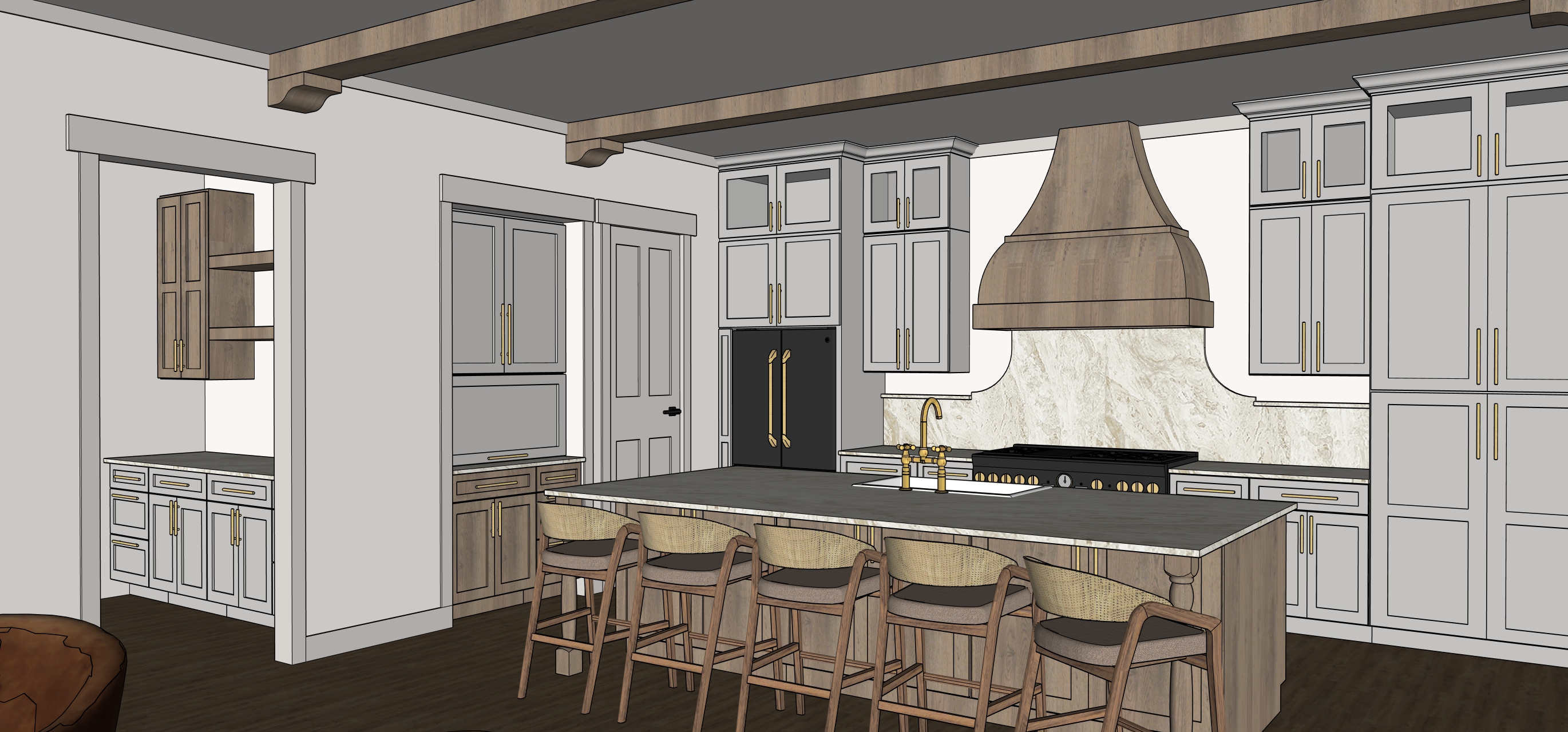 add can lighting in ceiling make realistic maintain colors make back wall cabinets white in color add decor on countertops