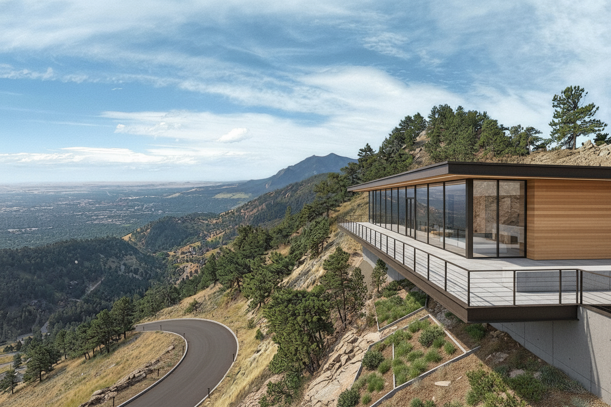 render site plan with a manicured lawn layered flower beds low maintenance shrubs native plants stone pathways
