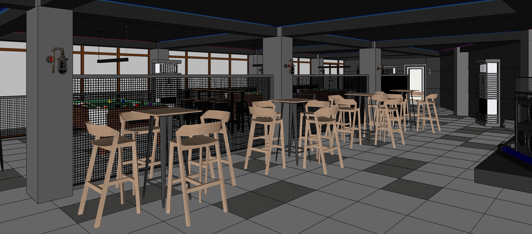 render a bar maintain the photo cove ceilings with led lights based on the picture industrial interior design