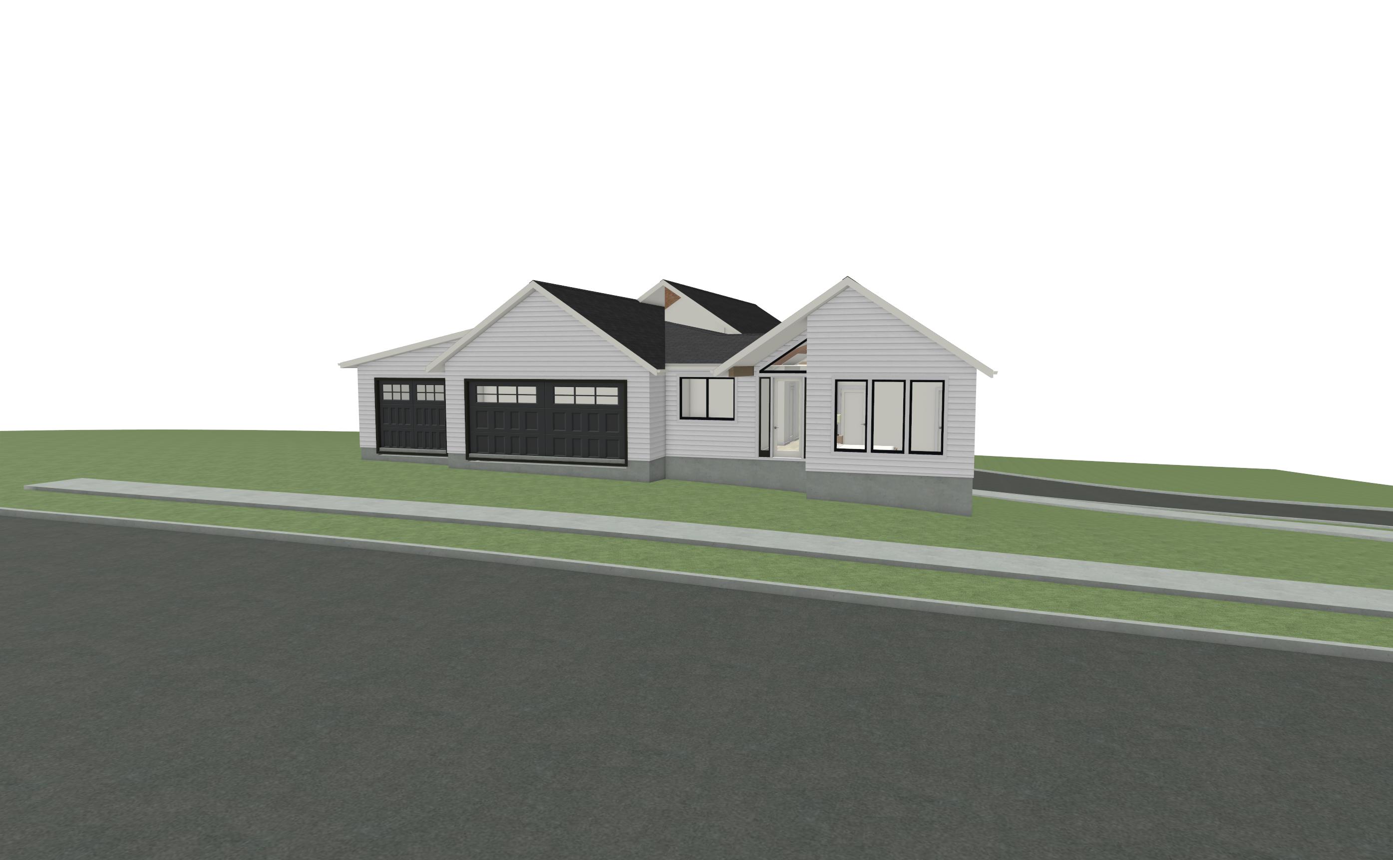 wood siding main siding is charchoal black and as an accent natural weathered wood with visible grain variation subtle color shifts slight roughness and realistic aging high end mountain modern jackson hole style stone veneer sharp high detail stone texture with depth shadow between joints natural color variation cool grays tans realistic mortar definition metal roof trim matte dark asphalt shingle and dark fascia windows doors keep exact mullions and layout enhance glass realism with slight reflectivity and interior glow this is in the montana with views of the bitteroot no trees close by the hill slopes in the back this is in a suburb so add houses around it