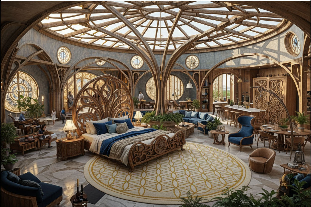 render this elevation using the exact existing geometry with no changes to massing proportions rooflines or window door placements apply a western americana modern farmhouse blend 60 20 20 using the denim saddle palette main body should be warm tan stucco add denim blue accents selectively on the front door or shutters use weathered natural timber for gable ends porch posts brackets exposed rafter tails and other western detailing incorporate aged galvanized or zinc standing seam metal roof accents with a muted weathered finish add stone wainscot in neutral sandstone tones at key volumes to reinforce the western ranch identity maintain modern elements such as clean fascia lines simplified trim dark metal window frames and restrained massing clarity integrate subtle farmhouse touches like selective board and batten on an accent mass only not the whole elevation lantern style fixtures and clean vertical proportions all enhancements must stylistically overlay the existing architecture without altering its geometry landscaping should be sparse western dry with native grasses and low shrubs use warm natural daylight