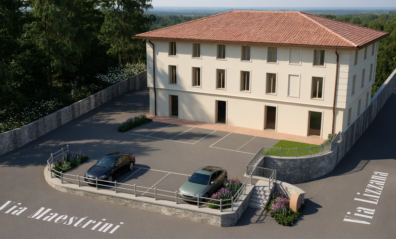 exterior shot rustic modern style house add stone elements around the abse of the home natrual wild grasses and flowers in front wooded scenee beond make it feel cozy and inviting yet still very modern architecture