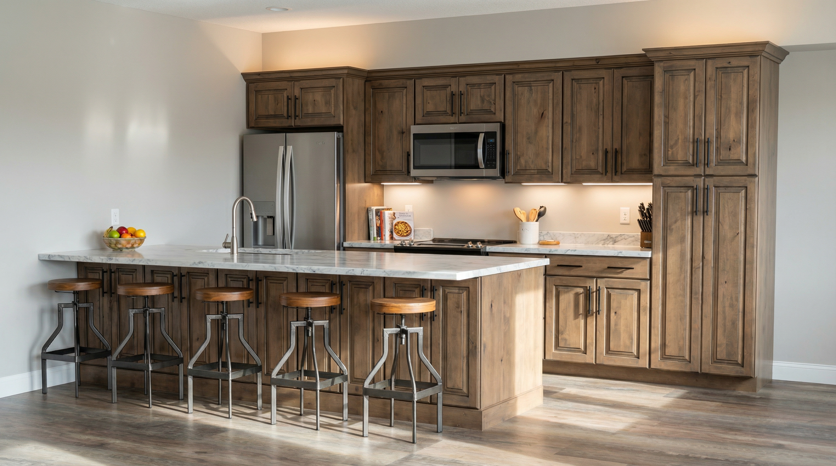 change the metal railing to a cable railing with a wooden top
