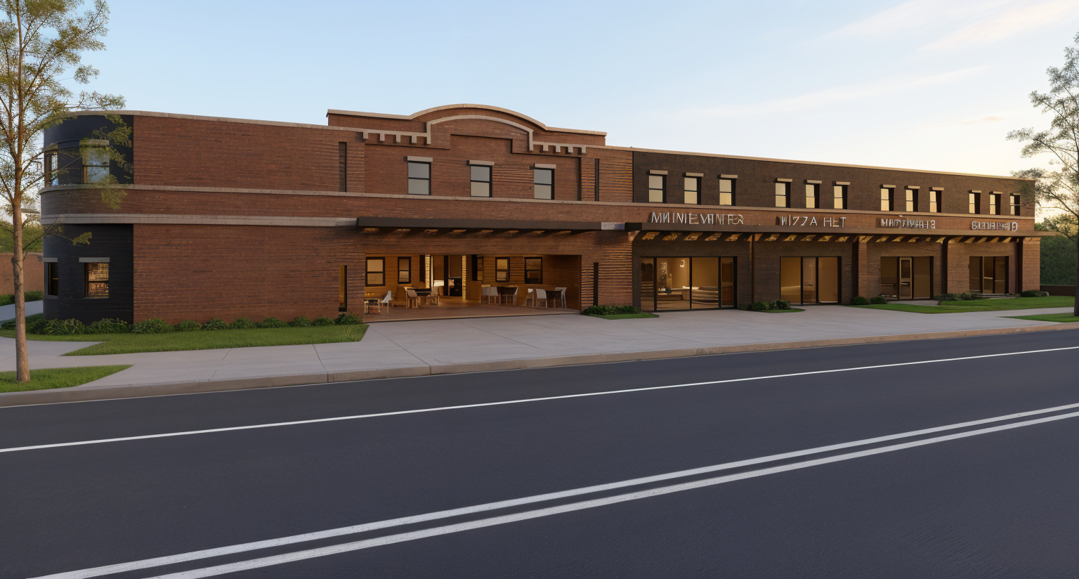 storefront with lights on realistic in daylight