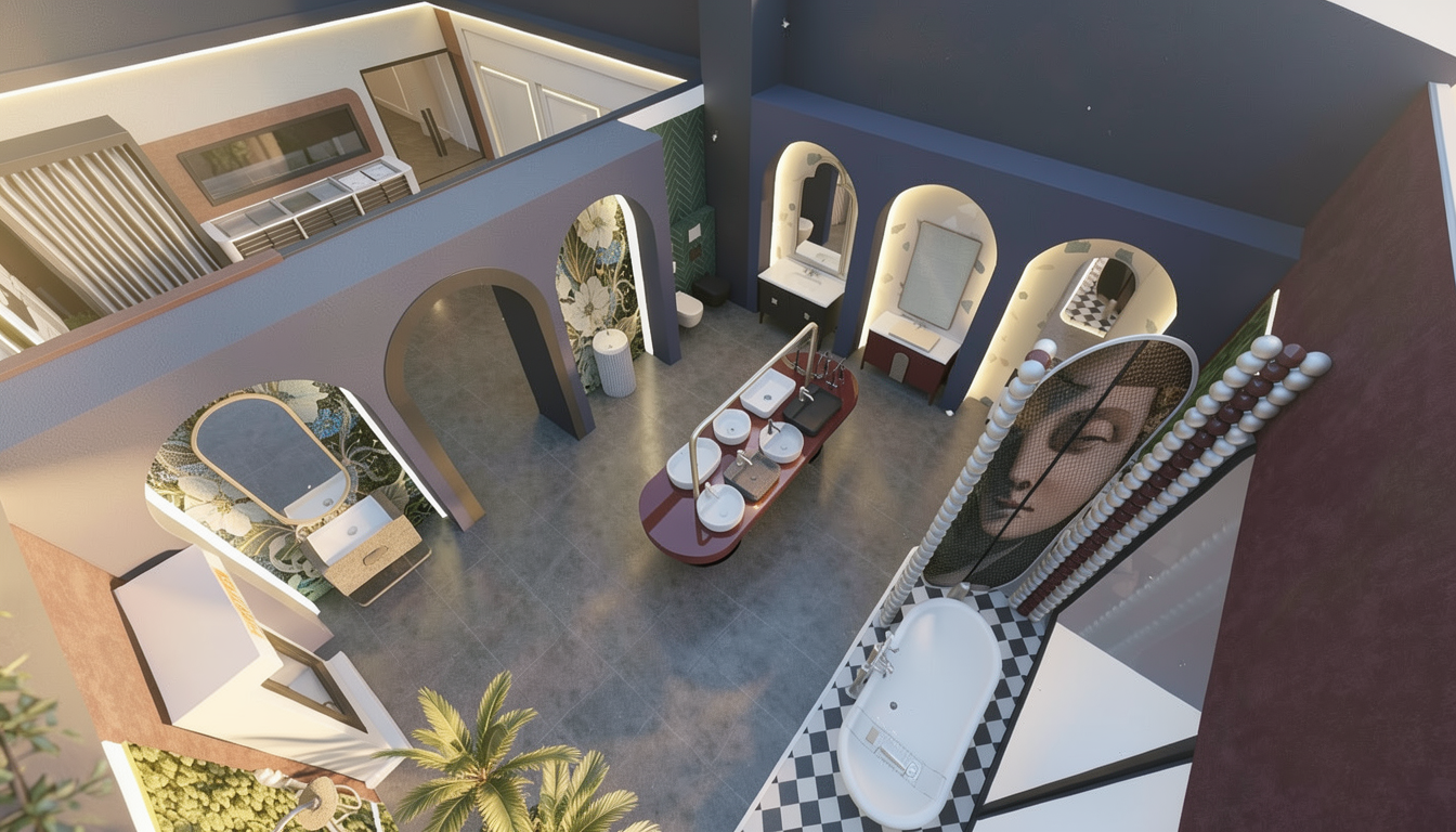 a render of a night installation at the singapore national orchid gardens the path is filled with groups of people made of families and couples they walk through the dark trail carrying oil lamp lanterns each lantern base shines light from the bottom illuminating the pathway in front of them along the pathway the orchids along the sides are slightly lit soft fog moves through the space in the distance more groups with lantern glows can be seen
