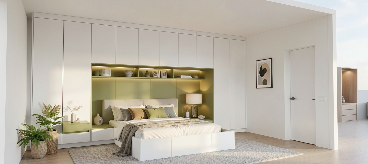 render this bedroom the colors are white superr matte and superr matte add bedroom elements and decor use the same colors as in the photo uploaded