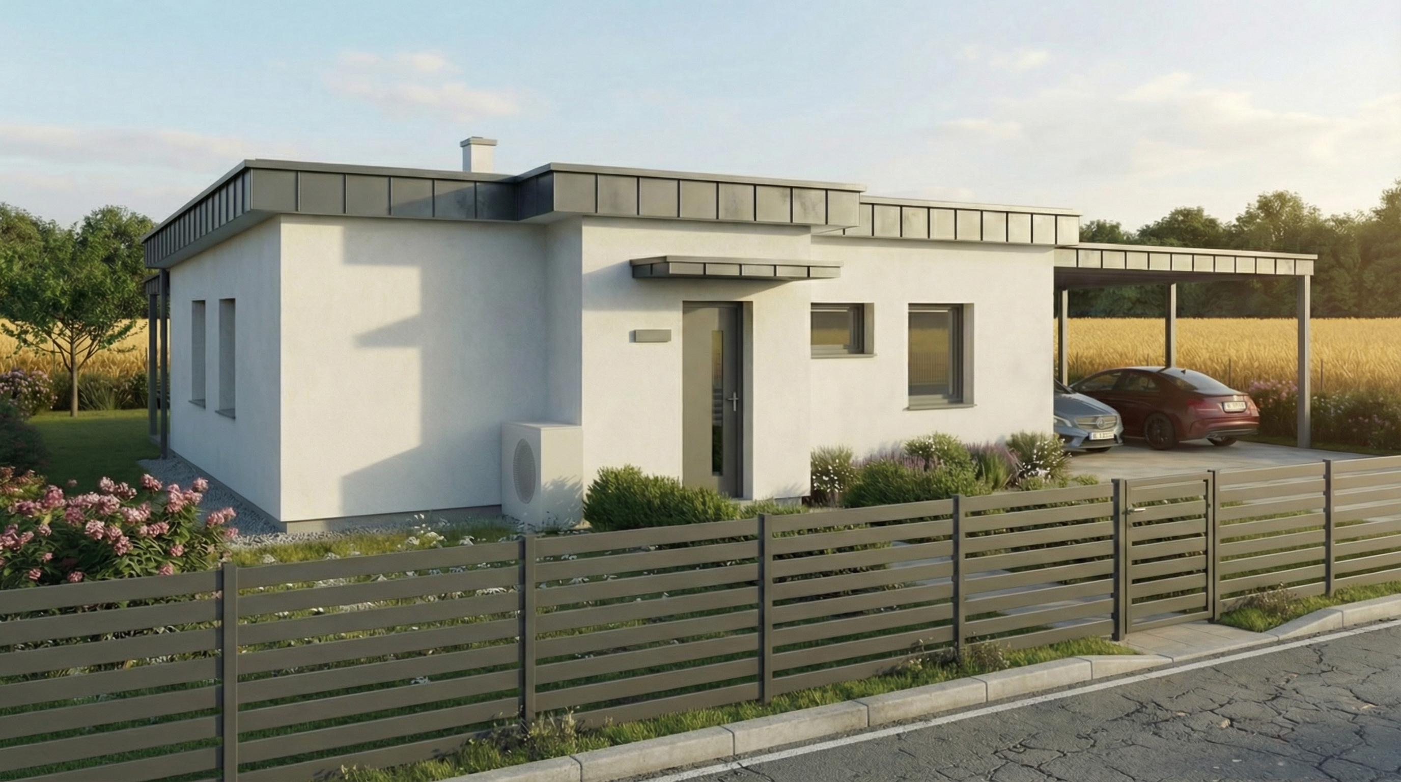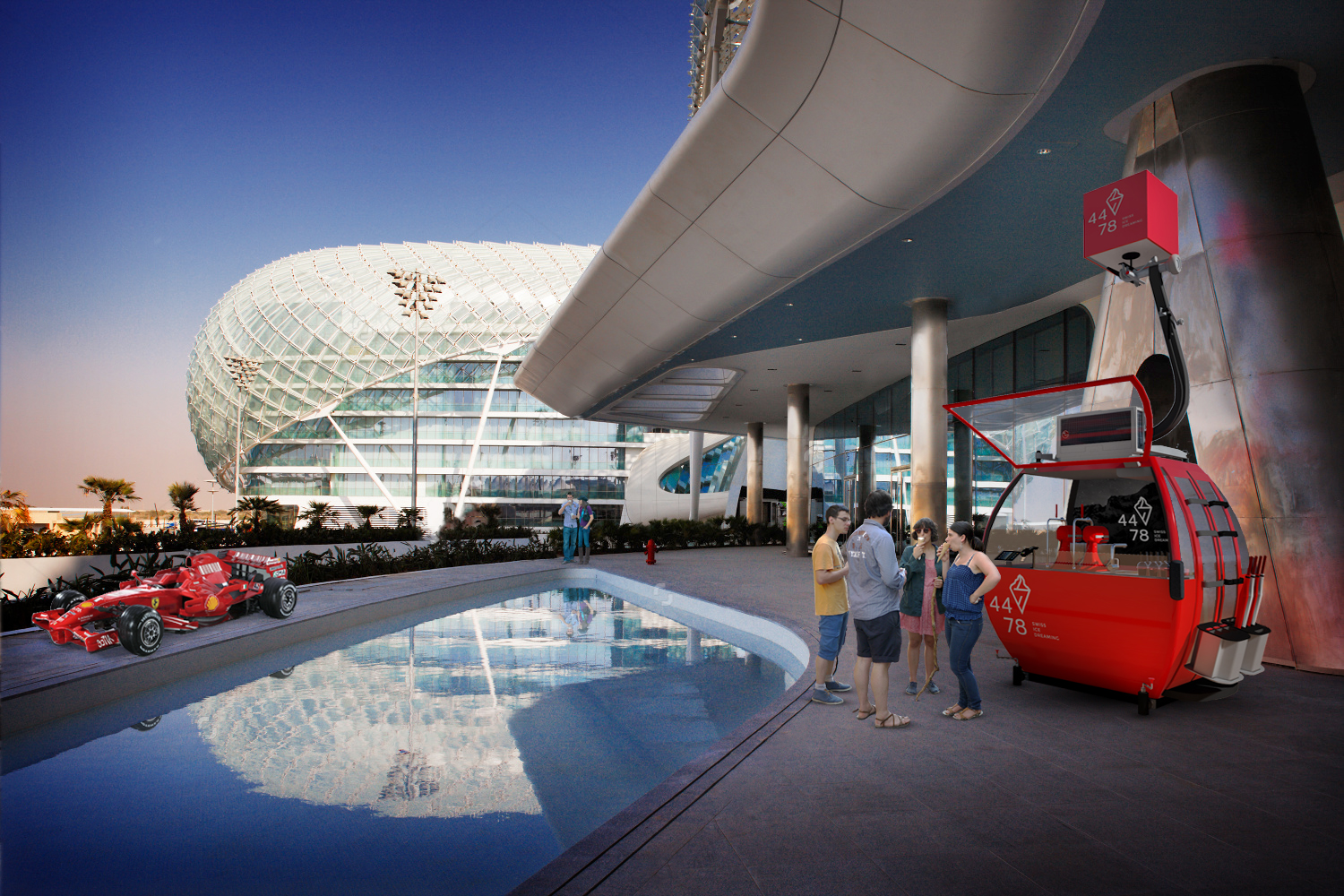 important preserve the existing geometry and the existing context exactly as provided preserve the existing windows do not add new windows do not modify alter reinterpret add remove scale or reshape any geometry do not change the site surroundings street layout neighboring buildings vegetation or context elements do not modify geometry scale proportions buildings road layout sidewalks or surrounding context in any way do not modify text soft noon atmosphere diffused neutral natural daylight with subtle cold tones cinematic architectural mood warm interior lighting 3000k glowing from inside creating strong contrast between cool exterior and warm interior large glass surfaces with realistic reflections soft mirror effect subtle environmental reflections of sky and surroundingsimportant do not add new windows do not modify the text remove the people remove the car do not add fog