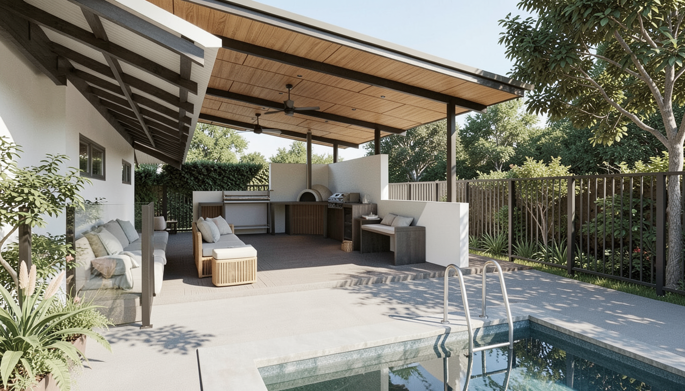 add outdoor lounge metal colourbond sheeting to fence mediteranian theme