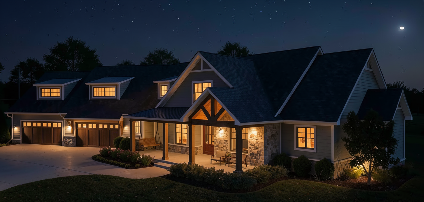 render an outdoor view of a backyard and bathroom view on the slight opening on door