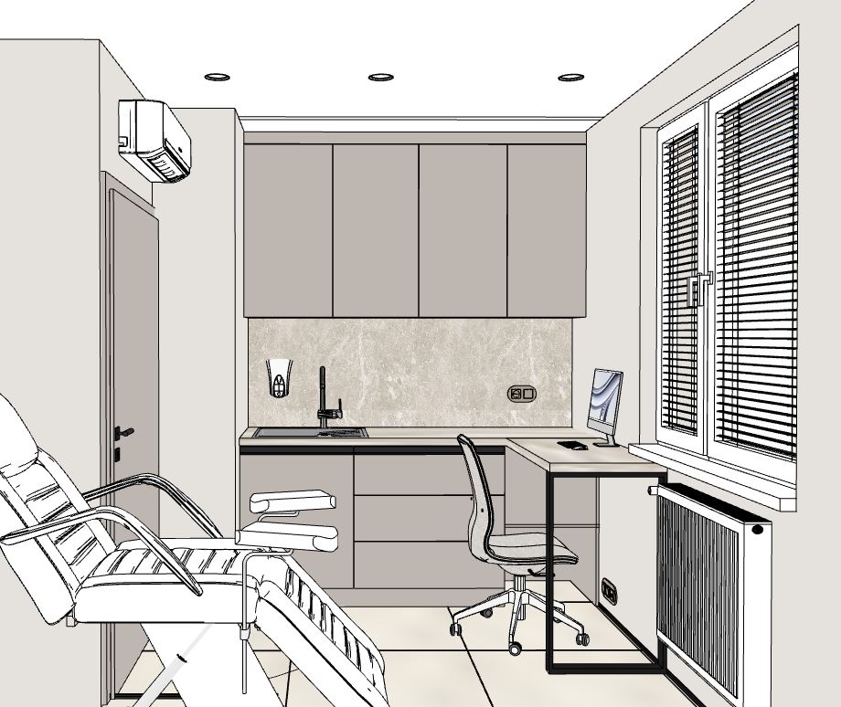 dodaj ciep e o wietlenie pod szafkami ociepl ca e wn trze i kolorystyk dodaj taboret medyczny bia y na k kach fotel przy biurku niech ma adna naturaln tkanin pod oga tubadzin torano beige jasne fuga a blat to kronospanblat kuchenny navona kremowa