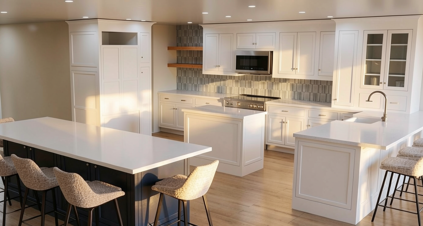 render a hyper realistic modern high end contemporary three story house in florida setting where there are palm trees and the lights are lit up on the outside of the house the window frames are light gray maintain the window design where there are shutter design on left and right side the garage door is a sleek modern design in matte gray with wide horizontal panels and narrow glass inserts that create a clean contemporary look while letting in controlled natural light the roof is gray metal roof featuring a mix of gray brick white stone featuring large windows the exterior features an accent of bricks exterior wall clad in light gray linear stone veneer the stones are long narrow and horizontally stacked with tight joints creating a sleek contemporary texture subtle variation in gray and white tones adds depth without looking rustic the surface is matte with crisp edges and a refined architectural finish located on the left center where the 3 windows are located and it wraps around on the left atleast 1 foot the finishing around the garage doors are light bricks that are stacked linear gray stone veneer with a mix of cool toned shades tight horizontal joints and a clean contemporary texture modern residential entrance featuring a rectangular arch clad in smooth grayt colored panels with crisp vertical lines the main door is 6 feet wide made iron it has full glass lite frosted glass no mulls the trellis are all in gray the walls are a soft light gray with a smooth finish creating a serene and inviting atmosphere with lots of greeneries and landscape and with dramatic sky