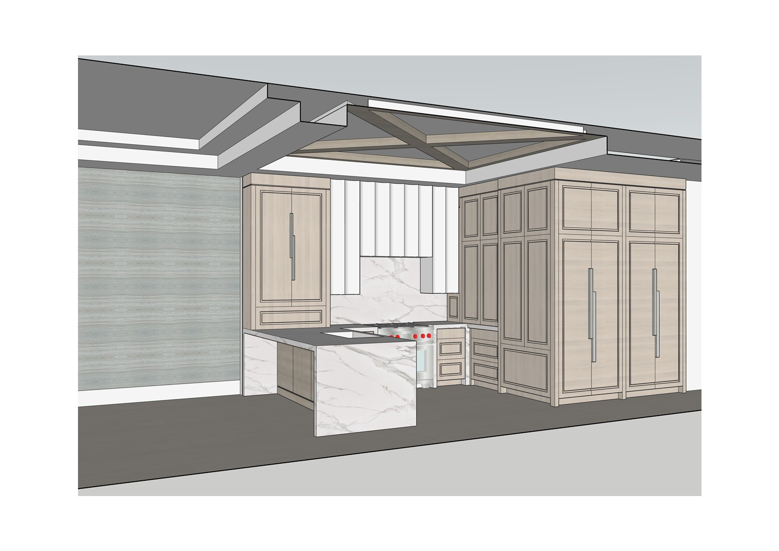 transform the provided elevation into a hyper realistic interior photograph that is indistinguishable from a real professionally shot interior design photograph this must read as a real space captured by a camera not a rendering not a visualization not architectural cg not concept art and not an illustration geometry lock non negotiable preserve the exact original geometry layout proportions ceiling details wall depths panel divisions openings doors cabinetry locations millwork dimensions built ins and circulation paths with zero architectural changes nothing may move scale simplify or be reinterpreted geometry must remain absolutely unchanged camera derivation critical derive the camera position height angle and framing strictly from the uploaded elevation eye level interior photography centered or naturally balanced composition 24 35mm interior lens feel no dramatic angles no stylized framing do not reuse or approximate camera framing from any previous image remove all drawing artifacts completely remove all linework cad edges drafting outlines diagrammatic shapes sketch artifacts nothing may appear outlined flat schematic or illustrative the elevation must be visually reinterpreted as a finished real interior photograph material realism rules wood if present smooth solid plank material extremely subtle restrained grain matte or soft satin finish only no graphic patterns no decorative striping no visual noise wood must absorb light gently never glossy or sharp fabric upholstery if present soft compression subtle seams gentle shadowing natural fabric texture no flat color blocks stone slabs if present light natural veining soft organic variation low contrast no symmetry no bold or busy patterns stone must feel heavy and grounded walls fine surface texture slight tonal variation never flat paint edge construction realism all edges corners joints and transitions must be softly broken and physically realistic no razor sharp corners no cgi perfect edges slight construction tolerances only everything must read as fabricated installed and dimensional lighting photographic behavior lighting must behave like real high end interior photography natural daylight only unless otherwise specified realistic light bounce gentle shadow falloff uneven exposure distribution subtle brightness variation across surfaces avoid studio lighting uniform illumination over clean exposure global illumination look slight softness is preferred over sharpness camera image imperfections very important introduce subtle photographic characteristics gentle lens softness micro exposure variation natural contrast roll off mild atmospheric depth primary plane sharp background slightly softer the image must feel captured not generated absolute constraints no creative interpretation no stylization no exaggeration no added or removed elements any deviation from the original elevation geometry or intent is unacceptable negative prompt always include architectural rendering 3d visualization cgi unreal engine octane vray sketchup look flat textures graphic lines outlined edges over sharpened studio lighting concept art illustration ai look plastic materials glossy wood high contrast grain perfect symmetry keep design as shown in the picture keep the design as it is in image light cabinets are white and brown cabinets are white oak keep design in the image as it is