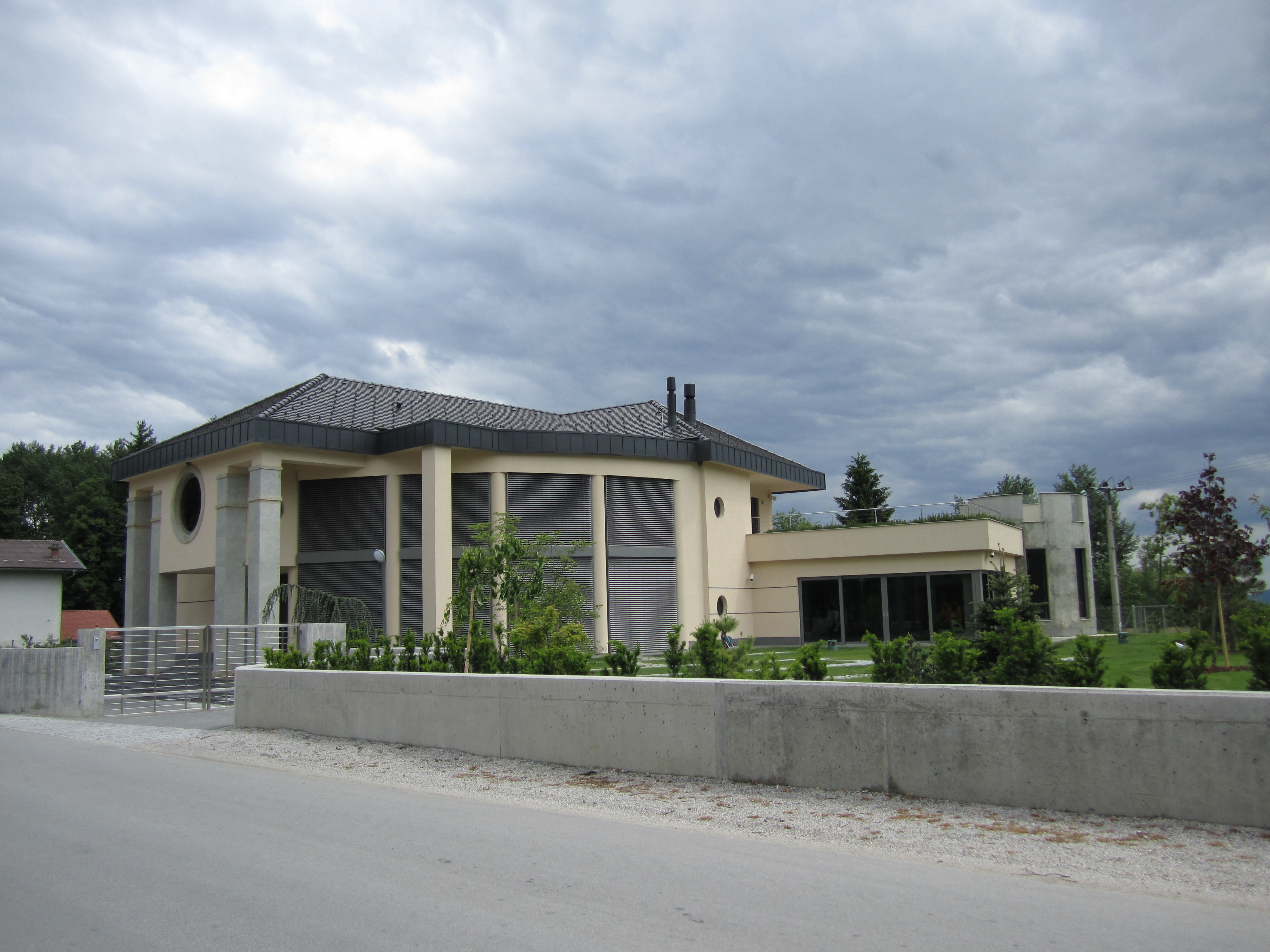 exterior shot place the house in the middle architecture