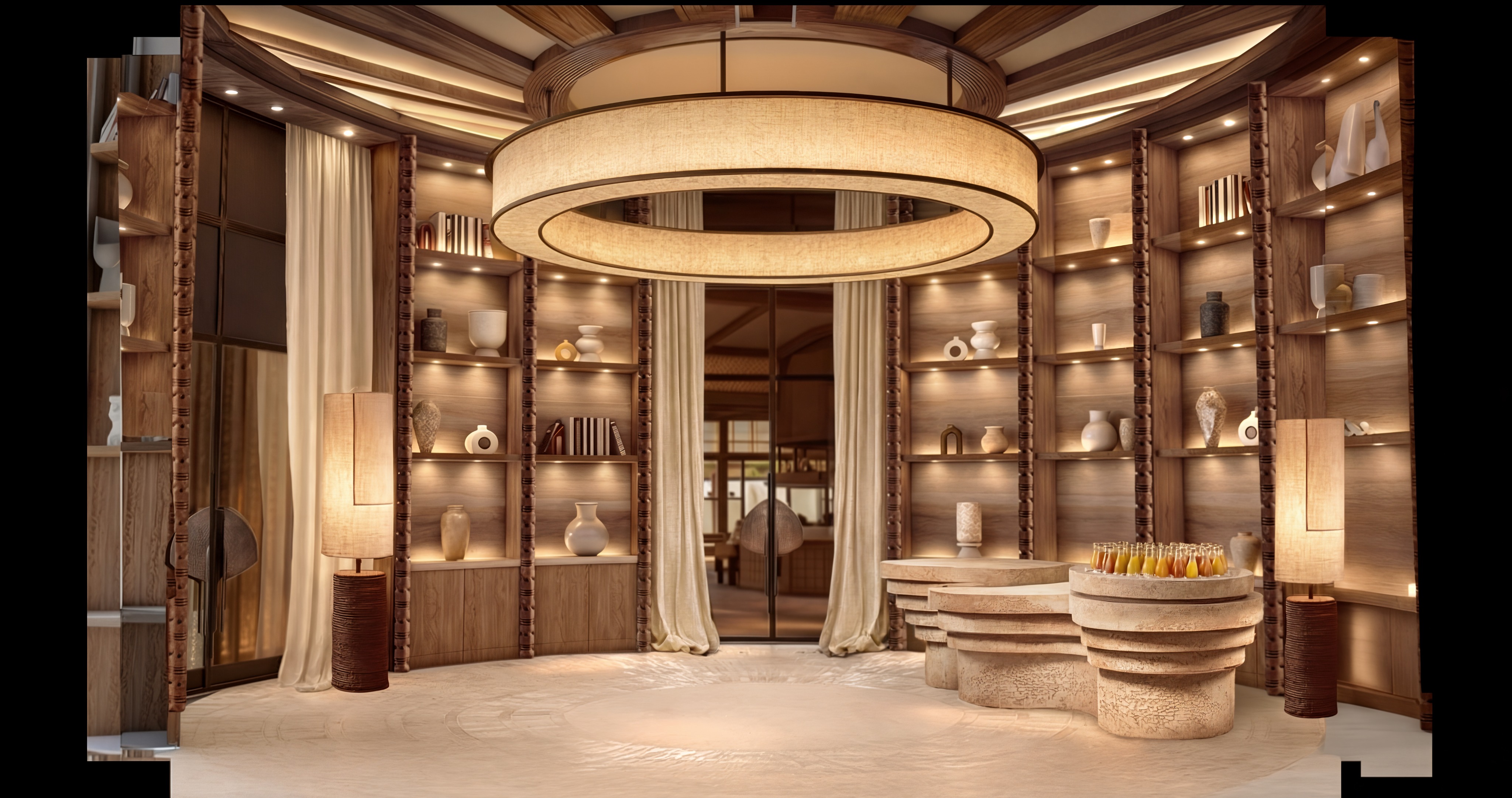 keep the lighting and colour temperature as it is make it slightly warmer make the curtains shorter have them be 5mm from the ground instead of collecting on the ground keep everything else as it is make it photorealistic