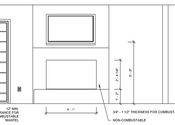 interior shot by keeping all of the existing linework render this black and white fireplace elevation to be colored with materials the fireplace surround is to be a concrete grey stone the hearth is grey concrete the tv above the fireplace on drywall the style is organic modern