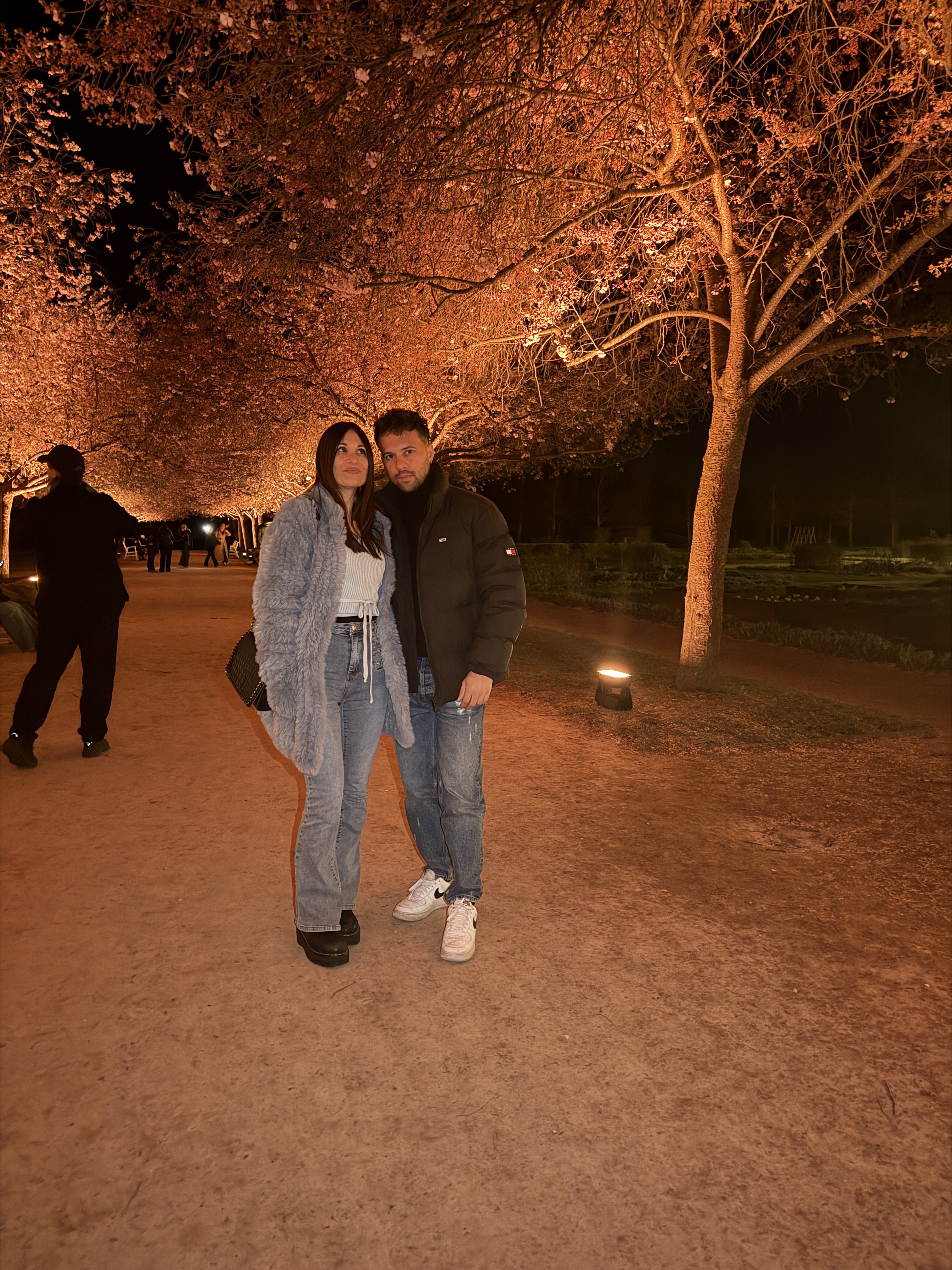 cambia la luce e fai in modo che i ciliegi siano rosa non questa luce arancione mantenendo sempre l atmosfera notturna