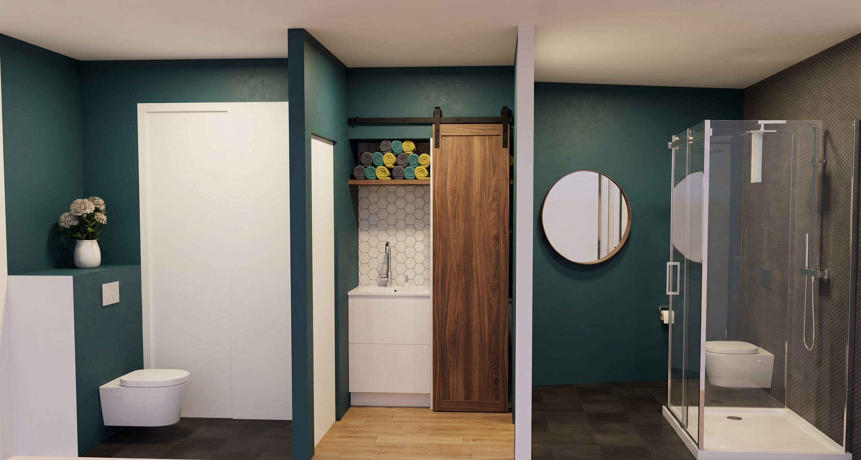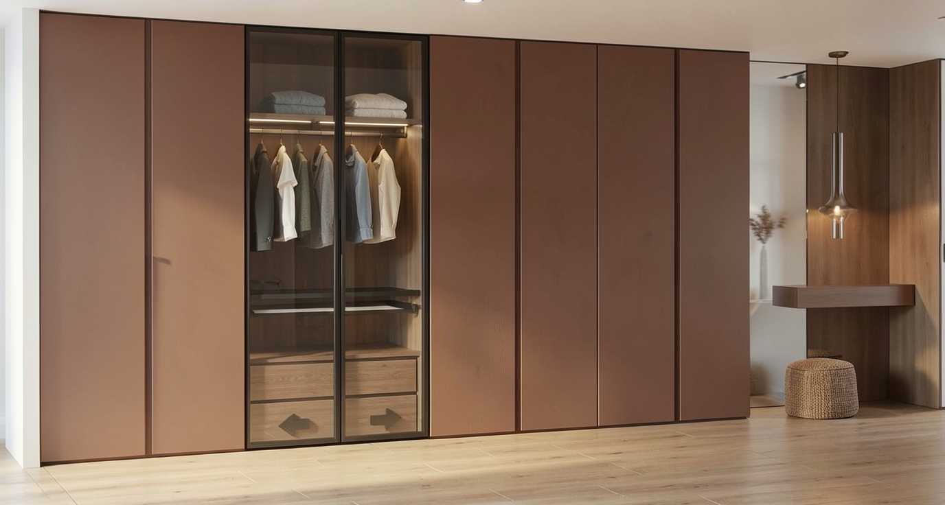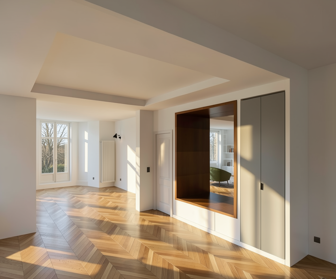 transform this modern outdoor caf patio with a mediterranean spanish vibe add a large fabric awning attached to the glass fa ade featuring bold red and white vertical stripes slightly soft and flowing introduce elegant red umbrellas with subtle white embroidered edges evenly distributed across the seating area replace existing chairs with black metal frame chairs combined with warm wood elements styled with red and white striped cushions add small round caf tables with dark metal bases and light stone or wood tops enhance the floor with textured natural stone tiles in warm grey beige tones slightly irregular for an authentic feel include lush greenery in terracotta pots climbing plants near the fa ade and soft shadows for a warm afternoon ambiance lighting is soft mediterranean sun realistic high end architectural visualization ultra detailed 4k natural materials cozy yet refined atmosphere