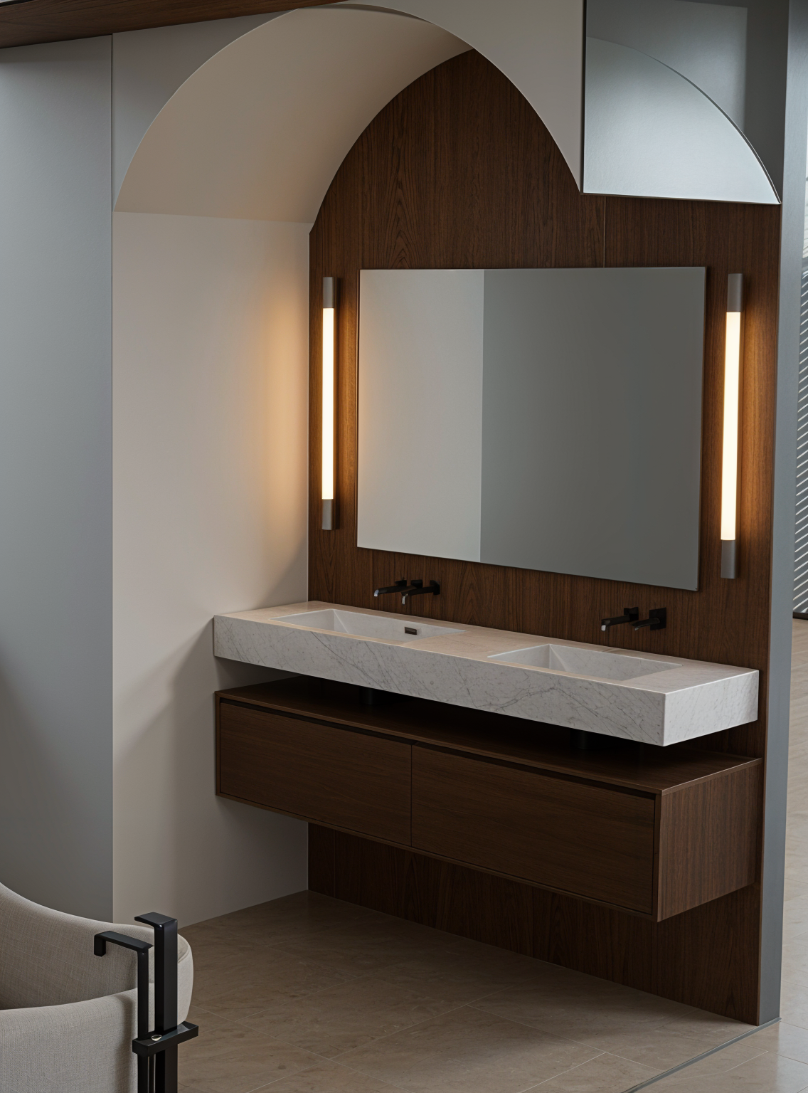 futurism exterior shot white stone finish with some shrubs and maybe a tree in front i really like those windows up top can we pitch the roof in front of those windows lower architecture