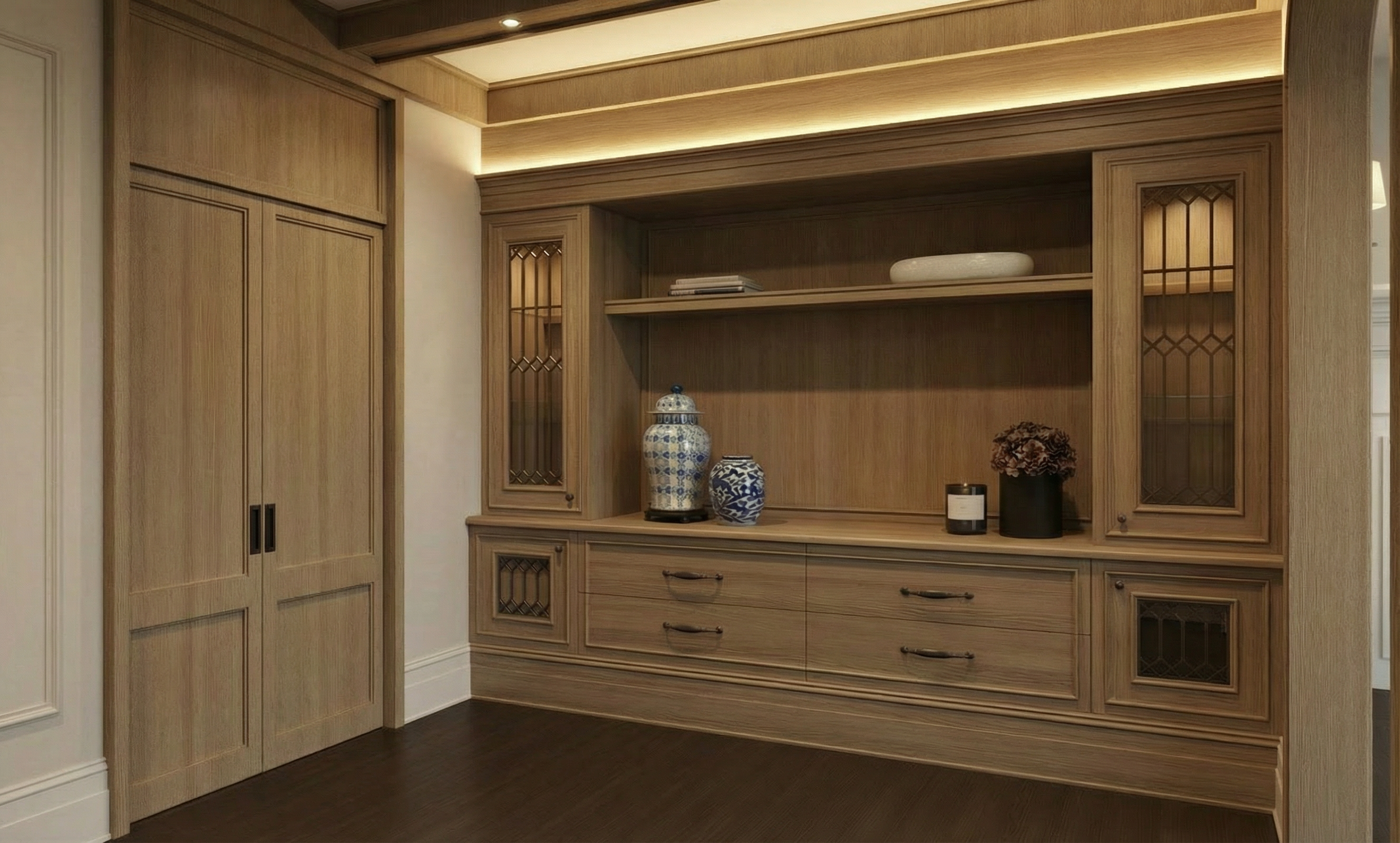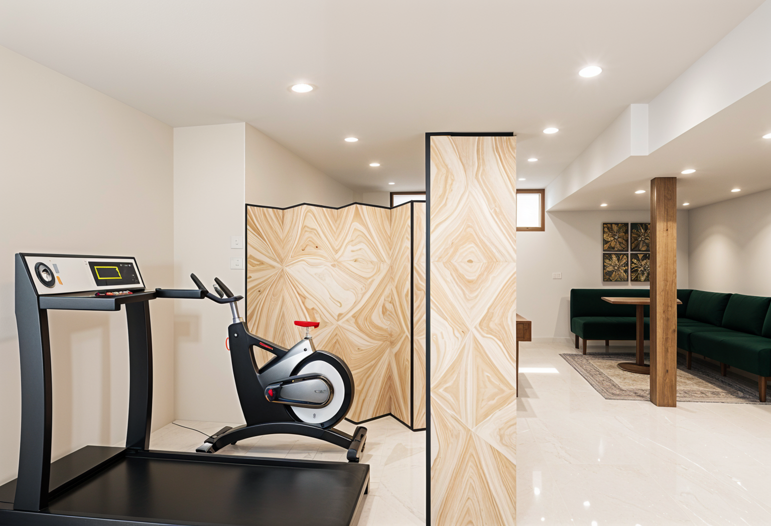 improve the quality of the image and change the green screen to a walnut wood veneer screens sitting on castor brass wheels